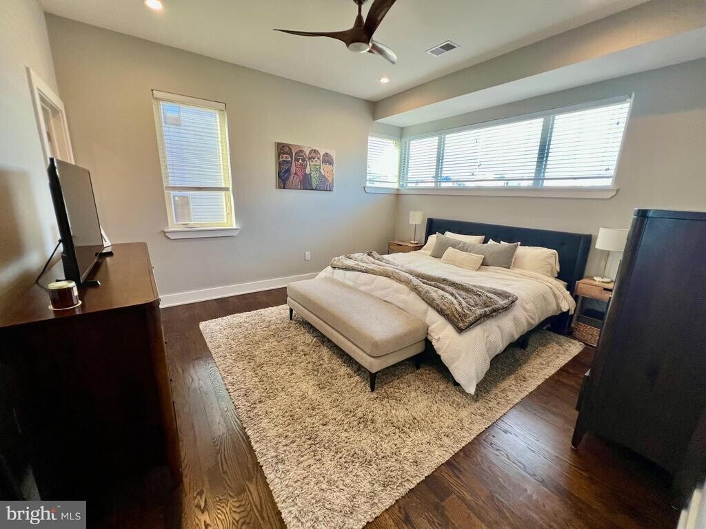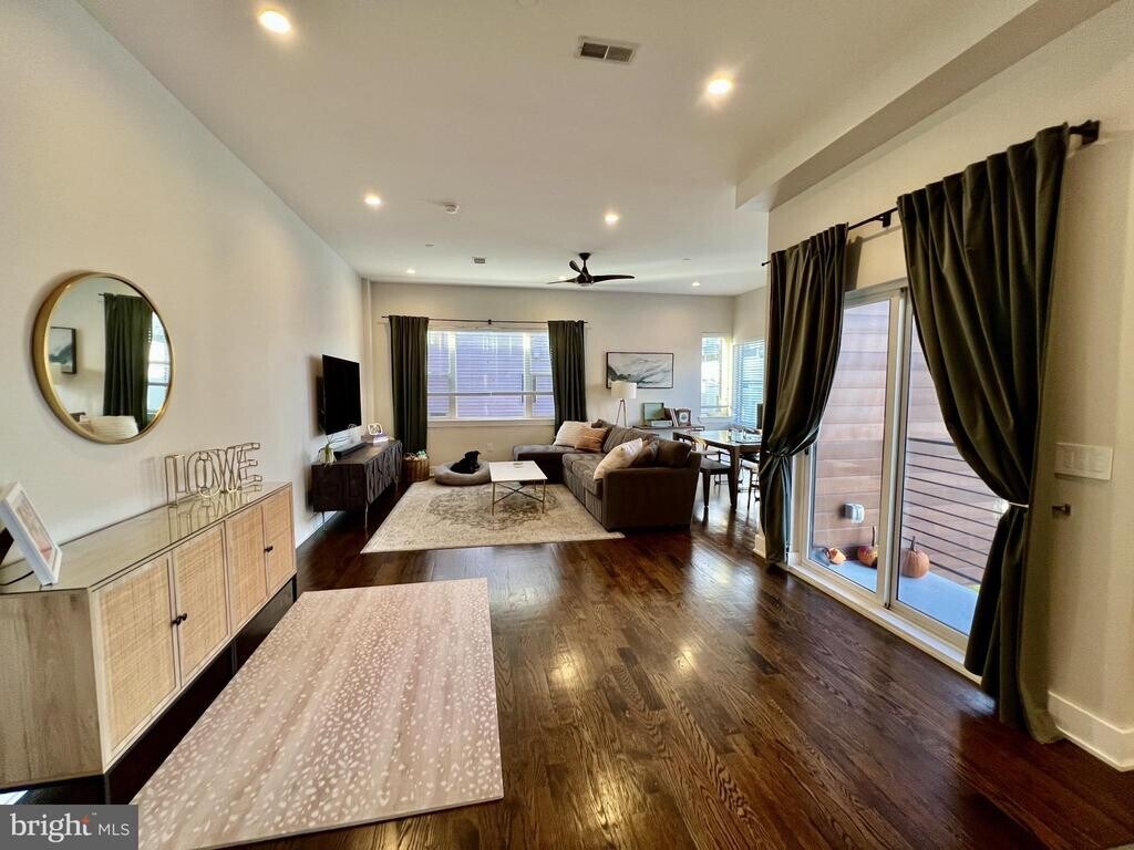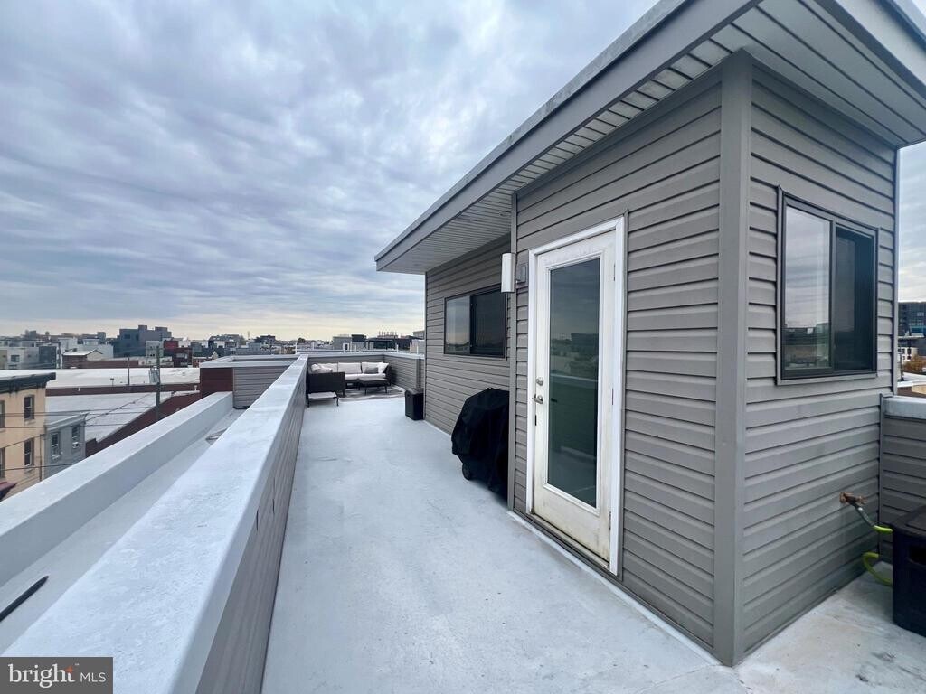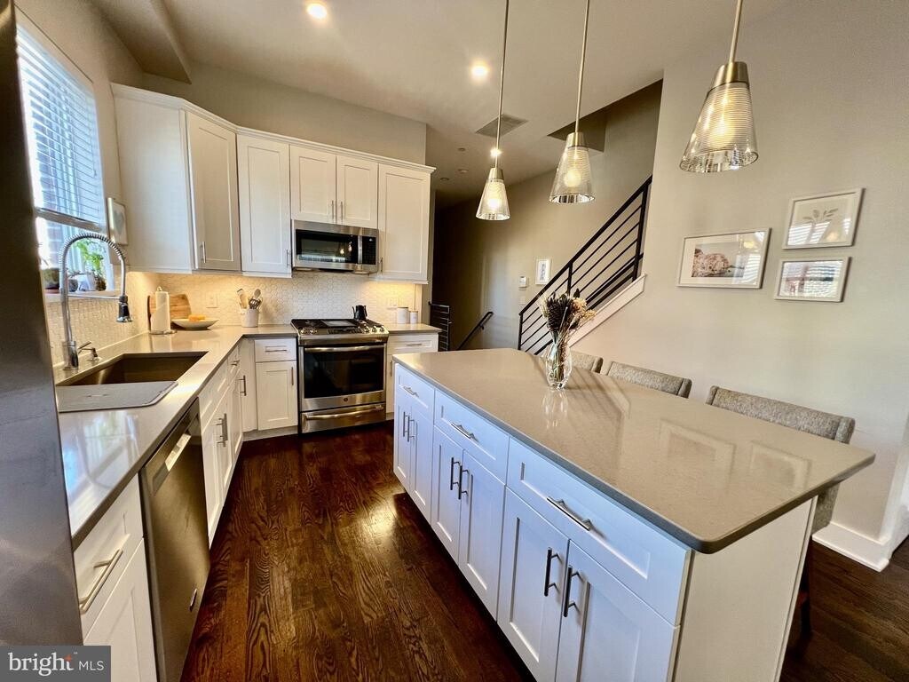 Just a few blocks from lively Frankford Ave in the heart of Fishtown, this move-in ready newer-construction home is available for rent starting January 1st and checks every box. Step inside to rich hardwood floors and a bright, open-concept layout built for everyday living and easy entertaining. The gourmet kitchen is the centerpiece of the main level, featuring upgraded white shaker soft-close cabinetry with crown molding and under-cabinet lighting, sleek quartz countertops, a timeless hexagon tile backsplash, stainless steel appliances, and a large island perfect for cooking, gathering, or casual meals. The kitchen flows seamlessly into the spacious living and dining areas, highlighted by high ceilings and oversized windows that flood the space with natural light. Right off the living area, enjoy a private balcony overlooking Thompson Street — ideal for morning coffee or a bit of greenery. A guest bedroom, full bath, and generous closet space round out this level. Upstairs, hardwood continues throughout. The primary suite is a true retreat with a large bedroom, two walk-in closets, and a spa-like en-suite bath featuring a modern double vanity, oversized glass walk-in shower, and designer tile finishes. A second guest bedroom, another full bath, additional storage, and a conveniently located laundry room with GE washer and dryer complete the second floor. Top it all off with your private roof deck offering breathtaking panoramic views of Philadelphia — the perfect spot to relax, dine outdoors, or entertain friends with skyline sunsets as your backdrop. Additional upgrades include a home security system, stylish metal stair railings, and more. Enjoy an unbeatable walk score with some of Fishtown’s best restaurants, coffee shops, boutiques, and groceries just steps away. Available January 1st — reach out for lease details, pet policy, and to schedule a private showing.