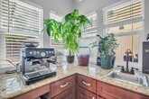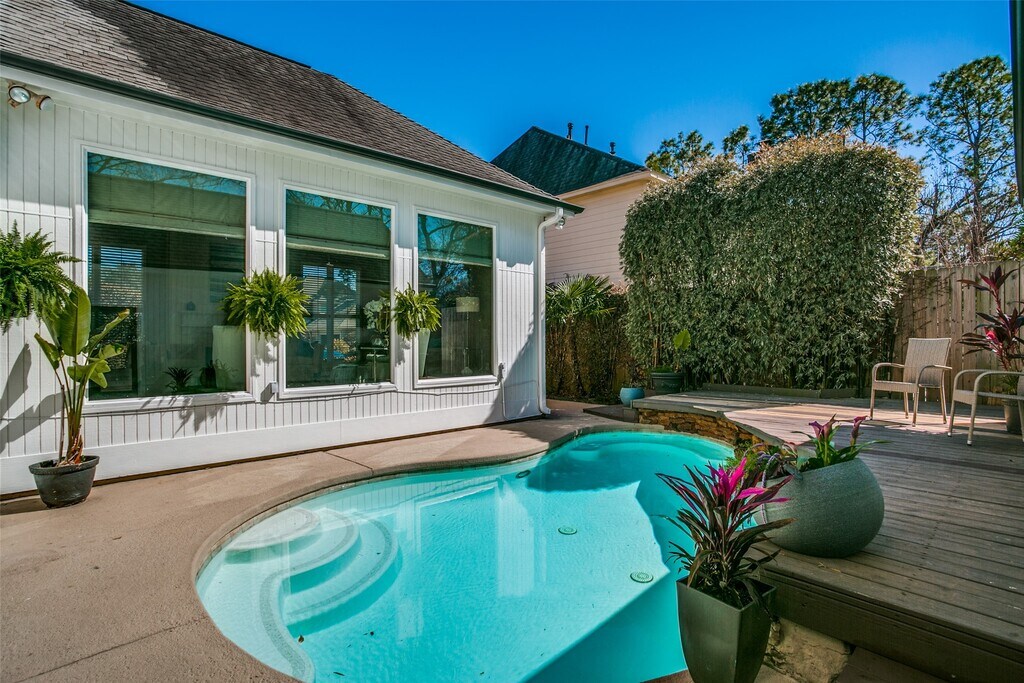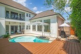 This soft contemporary residence seamlessly blurs the boundaries between indoors and out,with the sparkling pool anchoring the heart of the home. A herringbone-tiled hallway guides you into the kitchen and dining spaces,where French doors gracefully open to reveal the pool’s cascading waterfall and inviting wood deck. Ascend into the living room,where bleached wood floors and a glass-tiled fireplace set a serene tone beneath a dramatic panel of floor-to-ceiling windows framing the tranquil pool. The versatile fourth bedroom on the main floor easily transforms into an elegant study or a formal dining room. Upstairs,a generous game-room with a private balcony surveys the pool below,while two additional bedrooms share a stylish Hollywood bath. An entertainer’s dream,the walk-in wet bar sits just off the entry—perfect for gatherings. The primary suite features a raised sitting area,and the ensuite bath has cathedral-like windows,bathing the space in natural light. MLS# 43341781