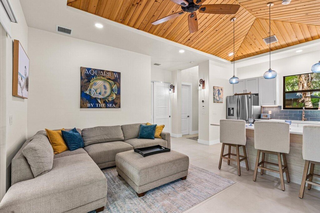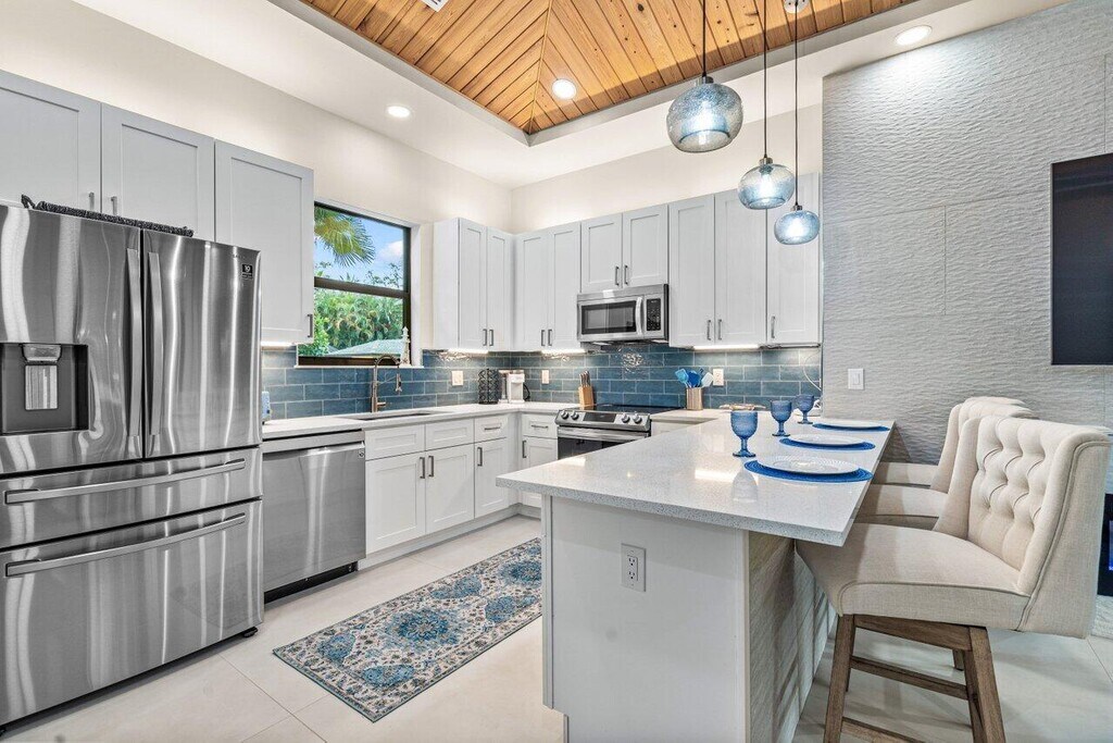 Discover unparalleled elegance in this newly constructed 2023 masterpiece, fully furnished to perfection. This exquisite Wellington residence features soaring 10' ceilings and high-end design throughout, offering 2 luxurious bedrooms and 2 opulent bathrooms. Available for a seasonal rate, this property boasts a quarter-acre of complete privacy and security within a fenced enclave. Step into the grandeur of the tower foyer and be captivated by the sophisticated designer kitchen, ideal for both casual dining at the eat-in counter for four and entertaining in the covered, screened patio. Revel in the resort-like amenities, including two outdoor firepits perfect for evening cocktails, and a hot tub nestled in a tropical paradise.