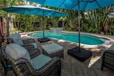 Charming and spacious 2-bedroom, 2-bath pool home with the flexibility of a third bedroom, ideally located in the heart of Hollywood Lakes. Enjoy the ultimate South Florida lifestyle with the beach, downtown Hollywood, dining, and entertainment just a short walk away. The home features a bright, inviting kitchen with white cabinetry, black granite countertops, a farmhouse sink, newer stainless steel appliances, and a gas stove—perfect for everyday living and entertaining. The open layout includes a comfortable living room and a formal dining area, along with a versatile family room with a closet that can easily function as a third bedroom, home office, or den. Both bathrooms have been tastefully updated with marble mosaic flooring and rain showers. The guest bathroom offers a double vanity and a spacious two-person soaking tub for added comfort. Step outside to your private backyard oasis, complete with a solar-heated saltwater pool featuring a built-in jacuzzi and waterfall. Surrounded by lush landscaping and multiple outdoor lounging and entertaining areas, this space is ideal for relaxing or hosting friends and family. Additional features include impact windows and doors, a one-car garage, a double front driveway with extra parking in the rear, a newer electric water heater, and beautifully maintained landscaping throughout. This is a great rental opportunity in one of Hollywood’s most desirable neighborhoods. MLS # A11944144