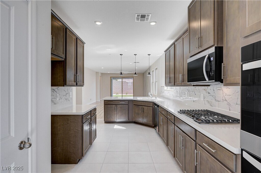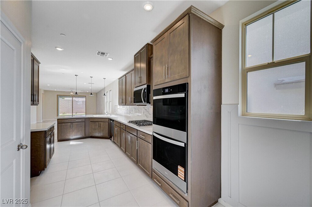 No pets! Who will Be the first to live in this stunning, brand new single-story home located in the prestigious gated community of Summerlin West? This brand new home Featuring 3 bedrooms, 2 bathrooms and 2 car garage. this modern residence showcases luxury vinyl plank flooring and designer tile throughout. The open-concept layout offers a spacious living room and a chef-inspired kitchen with quartz countertops, upgraded cabinetry, built-in double ovens, a gas cooktop, and a charming breakfast nook. Enjoy seamless indoor-outdoor living with direct access to the covered patio from both the primary suite and the living room. Additional highlights include a tankless water heater, epoxy-coated garage flooring, and an oversized backyard with breathtaking mountain views—perfect for entertaining or relaxing in privacy. This is a rare opportunity to own a never-lived-in home in one of Las Vegas’ most desirable communities. House is also for sell at $880k.