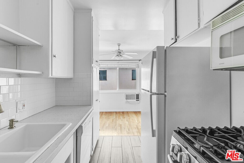 If bright, breezy, and perfectly located" is your love language, keep reading. This bright 1-bedroom, 1-bath gem just off Santa Monica Blvd gives you that "above it all" energy while keeping you right in the middle of the action. Hardwood floors? Check. Sunshine pouring through oversized windows? Of course. A/C in both the living room and bedroom so you stay cool when LA does its thing? Naturally.The fully loaded kitchen comes with a dishwasher and plenty of cabinet space, whether you're whipping up dinner or just reheating something fabulous. The layout is easy and airy, with a spacious bedroom that feels like a true retreat at the end of the day. It's clean, classic, and ready for your personal touch. The secure building keeps things peaceful, and you get free shared on-site parking plus one assigned driveway spot (please note it only fits a compact car - otherwise, there's easy street parking). No circling the block. No parking drama. Just pull in and head upstairs. And the location? You've got super easy access to all the Santa Monica Blvd favorites coffee, cocktails, groceries, and everything in between. Westside living, simplified." MLS# 26653867