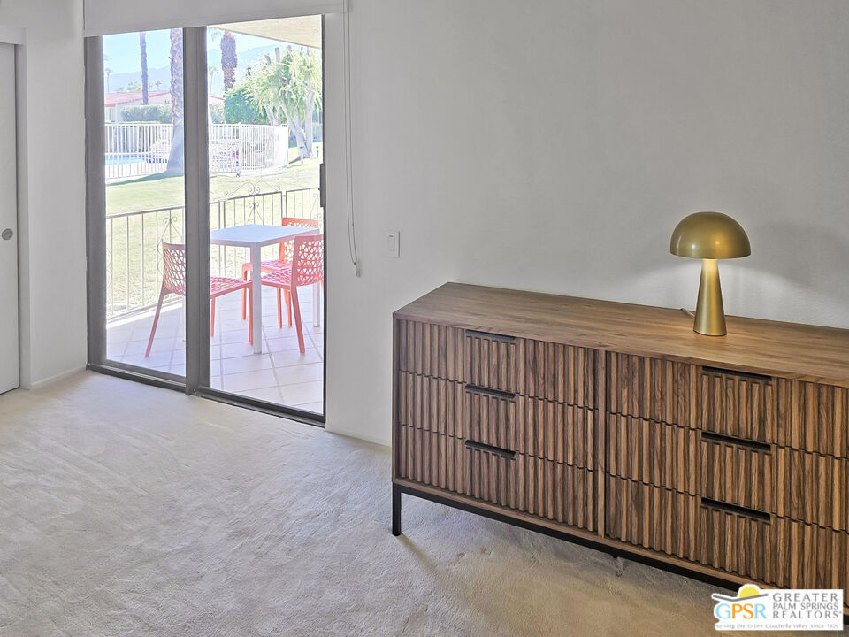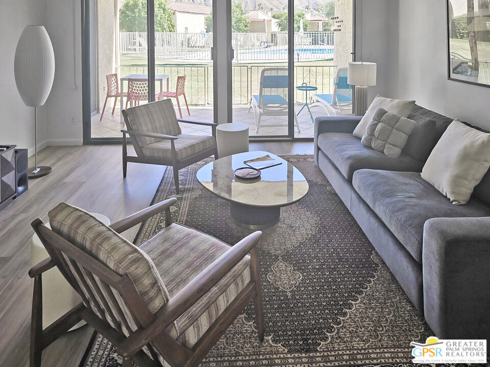 Seasonal rental--months available Jan thru Mar 2026 @ $4500/mo, May-June 2026 at $2800, Sep 2026 at $2800, Oct/Nov 2026 @ $3500. This turnkey furnished 2bed/2bath 1325 sq ft condo is your PERFECT Palm Springs getaway in a beautifully maintained community. Open floor plan flows seamlessly from great room to pool side view patio (just steps from community pool/spa) that also offers wonderful mountain views. Both the great room and the primary bedroom have sliding lass doors leading to this patio. Condo is all on one level with 1 car garage plus dedicated open parking spot steps from front door and front patio. Visitor parking spots steps from this condo also available. There is also a laundry room equipped with full size Washer/Dryer units. All this with an unbeatable location in South Palm Springs, minutes from downtown. Easy access to shopping, dining, hiking trails, golf and valley entertainment. NO PETS ALLOWED. Tenant pays combined elec/gas usage over $250/mo. Rental comes with cable TV,internet. MLS# 25598601PS