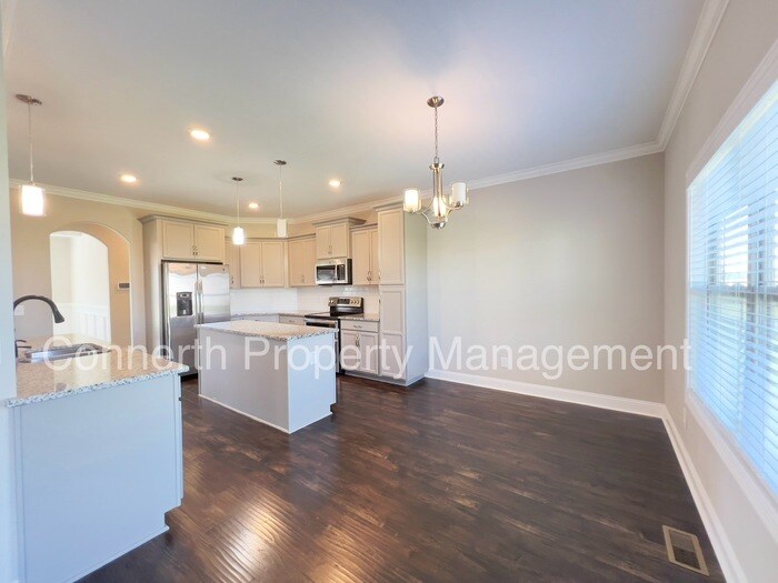 Welcome to Wellington Fields!! This beautiful brick home features 4 bedrooms, 3 full bathrooms plus bonus room. Open concept living with eat-in kitchen, granite countertops, SS appliances, double oven, large island with storage. Living space has fireplace and vaulted ceilings, separate formal dinging room showcases beautiful coffered ceilings. Primary bedroom suite on the first floor along with 1 guest room, full bath and laundry room. Primary bed/bath has double closets, double vanities, separate tub/shower and private toilet room. 2 additional guest rooms and bonus room on the second floor. Covered deck that overlooks a fenced backyard with added separate dog run. HOA covers road maintenance and open play area. Owner covers HOA fees. Tenant is responsible to furnish all utilities including lawn care and pest control. Pet friendly home with a $500.00 non refundable pet deposit per pet, 2 pet maximum. No monthly pet rent. NO SMOKING in home or garage at any time. Home available for tours. Accepting applications now. Move in ready by March 1, 2026. *Home is in the Kirkwood area* Contact us to schedule a showing.