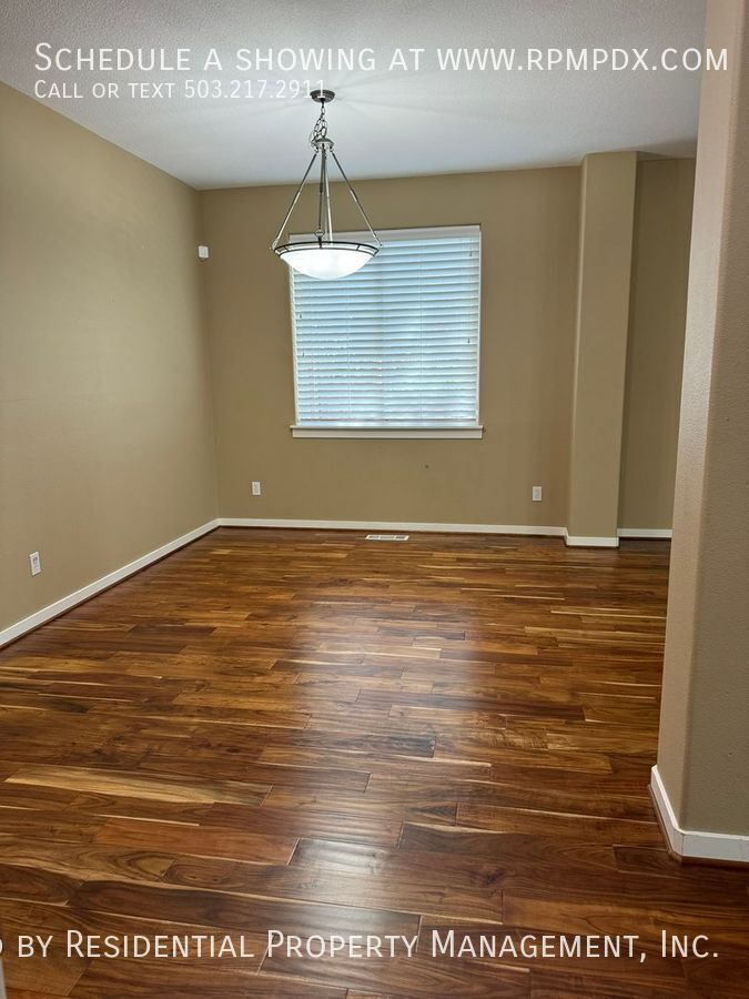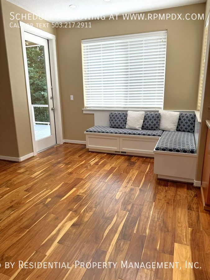 Residential Property Management, Inc., professionally manages this home for rent. If you have any questions, please contact us at info @ rpmpdx .com or FIVE 03/ TWO 17/ TWO 911. • This Beautiful home blends style and functionality, showcasing elegant finishes, contemporary design, and a seamlessly flowing floor plan. The main level features a versatile den that can serve as a fifth bedroom, along with an open-concept layout highlighted by hardwood flooring. The kitchen offers stainless steel appliances, a spacious island with ample storage, a pantry, and a convenient half bath nearby. The laundry room is fully equipped with a washer, dryer, utility sink, and upper cabinets for added organization. Upstairs, you’ll find plush carpeting throughout, three additional bedrooms, a full bathroom, and a bonus area perfect for relaxation or work. The expansive primary suite includes a private sitting or flex space, while the luxurious primary bath features a five-piece layout with dual sinks, a large shower, a private water closet, and a beautifully organized walk-in closet with built-ins. The outdoor area is a serene, low-maintenance retreat with a spacious patio surrounded by mature trees, creating a private and peaceful backyard setting. • Screening Fee: $64.95 per occupant aged 18 years or older. • Lease Start Date: 11/13/2025 • Lease Duration: 1 Year • Security Deposit Minimum: $3,795.00 • Security Deposit: Maximum: $9,485.00 • Tenant Responsible Utilities: Electric, Gas, Water/Sewer, Garbage, Recycling, Cable, Internet, Ect.. • Utilities Included: None • Pet Information: Dogs only. NO Cats. • Pet Rent: $75.00/month per pet. • Max 2 pets per home. • Pets MUST be at least 2 years old. No exceptions. • ESA and Service Animals are Welcome. • RENTERS INSURANCE REQUIREMENT: Before the lease commences, the tenant must provide proof of renters' insurance with a minimum coverage of $100,000 for General Liability. Manager/Agent complies with ORS 90.222. • INFORMATION DISCLAIMER: While we try to provide accurate information, we cannot guarantee its accuracy or reliability. Before applying, prospective applicants should independently verify all details about the property, neighborhood, and surrounding community. We do not offer warranties or guarantees regarding the accuracy or timeliness of the information provided. Please be aware that pricing, lease terms, availability dates, pets, and other information are subject to change without notice. We strongly recommend you review the marketing details again before applying. • SIGHT UNSEEN: Applicants may apply without first visiting any available property we manage. A future tenant's dissatisfaction with the unit when possession is delivered is not grounds to terminate the rental agreement. • Smoking and vaping are strictly prohibited in our rental properties, including homes, condominiums, ADUs, and townhomes. • NO GUARANTEE: We market and lease our properties in their present cosmetic state. Neither the Agent nor the Owner commits to any interior or exterior improvements, including, but not limited to, interior painting, flooring, fixture or landscaping enhancements, yard maintenance, or similar improvements before occupancy. Please contact us for questions. • Our homes are prepared for occupancy, ensuring high cleanliness standards, including sanitized surfaces and carpets. Repairs are completed per ORS 90.320 regulations. The Agent/Manager determines cleanliness standards, with their decision being final. 2.5 Bathrooms Breakfast Nook Dryer Extrodinary Walk In Closet First Floor Open Concept Floorplan Gas Fireplace Kitchen Pantry Main Floor: Hardwood Flooring Private Water Closet Spacious Kitchen Island Stainless Steel Dishwasher Stainless Steel Gas Stove Stainless Steel Overhead Microwave Stainless Steel Refrigerator Washing Machine
