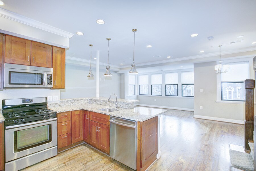 Step into this chic & modern 2,305 sq/ft condo to find this incredible first floor featuring an open living/dining area accented by designer light fixtures, built-in bar area, gorgeous bay windows stretching nearly wall-to-wall, as well as a conveniently located powder room. The unit's spacious kitchen comes complete with hardwood cabinetry, granite countertops, and stainless steel appliances including a dishwasher, microwave, and gas range. Heading up to the second floor, you'll find a comfortably-sized room perfect for guests, storage, a home office, etc., as well as two larger front and rear facing bedrooms, each with plenty of closet space and their own private balconies. If that wasn't enough, the front facing main suite features its own separate lofted space. Additional highlights include warm hardwood flooring and recessed lighting throughout, as well as high ceilings, a smart Nest thermostat, and premium in-unit washer/dryer on the second floor. Hill East is a residential neighborhood surrounded by some of DC's best green spaces like Lincoln Park, Congressional Cemetery, and Kingman Island. Just a short distance away, you'll be surrounded by a plethora of entertainment options on Barracks Row such as Belga Cafe, Ted's Bulletin, and Ambar, or head 15 minutes to Eastern Market to enjoy fresh produce and crafts from local vendors every Saturday and Sunday. In the immediate neighborhood, you can grab a bite at The Pretzel Bakery or The Hill Cafe. You are just a short distance from the nightlife on Pennsylvania Ave, which is easily accessible via the abundance of bus routes nearby! Security Deposit is equal to one month's rent. Tenant responsible for electric and gas. Sorry, no pets. Nest DC happily accepts applicants whose rent is paid either in part or in full via rental housing assistance provided by the District or federal government. To view all of our available properties or to contact our team, please visit www.nest- Central Ac/Heat Private Balcony Water