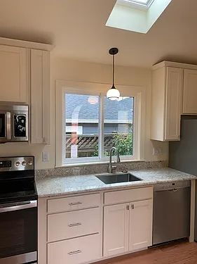Step inside this beautifully updated one-bedroom, one-bath home that combines modern finishes with warm, inviting touches. The open kitchen, updated bathroom, and private outdoor space create the perfect blend of comfort and functionality. Whether you're cooking under the skylight, relaxing in the living area, or enjoying fresh air through your sliding glass doors, this home is designed to make everyday living easy and enjoyable. PROPERTY HIGHLIGHTS Bright and Airy Kitchen: Enjoy cooking in a sun-filled kitchen with granite countertops, stainless steel appliances, a built-in microwave, and a skylight that fills the space with natural light. The open layout flows easily into the living area, perfect for entertaining. Cozy Living Spaces: Warm wood flooring runs throughout the home, creating a cohesive and inviting atmosphere. The living and dining area opens to a private outdoor deck through sliding glass doors, ideal for relaxing or entertaining. Spa-Inspired Bathroom: Unwind in a modern bathroom featuring a fully tiled shower/tub combination, sleek fixtures, and a granite-topped vanity with ample storage. Convenient Laundry Nook: In-unit washer and dryer are neatly tucked behind curtains, making laundry days easy and efficient. Bedroom Retreat: Bright and tranquil bedroom with large windows for natural light and fresh air. Modern Comfort & Efficiency: Energy-efficient appliances, LED lighting, and thoughtful updates throughout keep utility costs low and living comfortable year-round. UNIT INFORMATION Bedrooms: 1 Bathrooms: 1 Parking: 1 Driveway LEASING INFORMATION Rent: $2,800 Security Deposit: $4,200 Available: October 1st Lease Term: 1-year lease, with option to renew annually Utilities Included: Water and Garbage only Pets: Cats considered; sorry, no dogs $50.00 application fee This is a no-smoking property Contact Info: PMI Santa Cruz or call Equal Housing Opportunity. FIND MORE RENTAL LISTINGS AT EQUAL HOUSING OPPORTUNITY