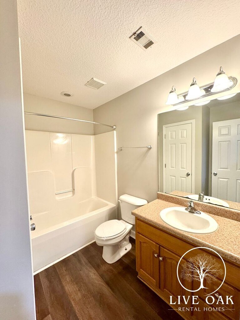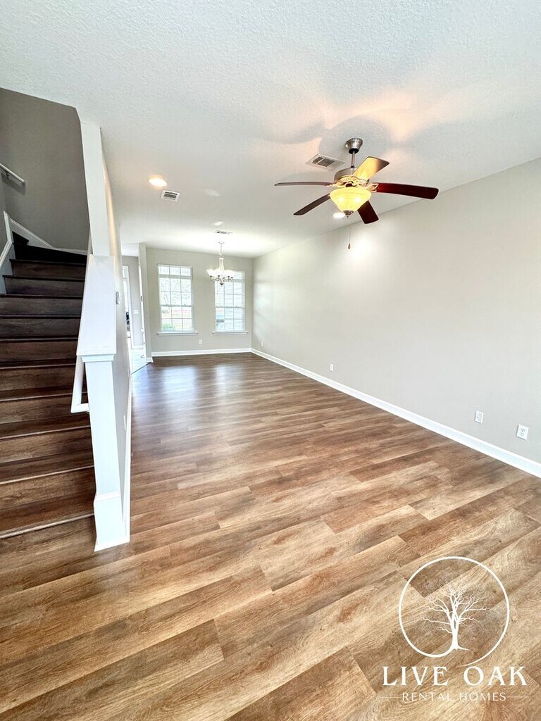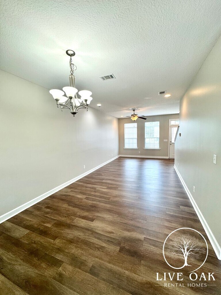 Welcome to this spacious two-story, 3-bedroom, 2.5-bath townhome with an attached garage, offering 1,722 sq ft of comfortable living space in the highly desired Governors Quarters community of Hinesville, GA. Recently updated with all new interior paint, this home is ideally located right outside of Gate 7 of Fort Stewart and surrounded by grocery stores, restaurants, and shopping, convenience is at your doorstep. Inside, the open-concept floor plan features new LVP flooring in the Living Room, Bathrooms, Staircase and Landing; as well brand new cozy carpet in the Bedrooms. The bright living and dining area flows seamlessly, making it perfect for both everyday living and entertaining. The kitchen is equipped with stainless steel appliances, abundant cabinetry, and ample counter space to meet all your culinary needs. A dedicated laundry room with washer/dryer hookups adds everyday functionality. Upstairs, retreat to the oversized master suite complete with a large walk-in closet and its own versatile bonus room—ideal for a home office, nursery, or private sitting area. Two generously sized secondary bedrooms with excellent closet space complete the upper level. As a bonus, this sought-after community offers a swimming pool, playground, and HOA-provided lawn care—perfect for a low-maintenance lifestyle. Pet friendly!* (*One time, non-refundable $250 pet fee may apply, per pet, 2 pets limit, up to 40 lbs). Note: this property is managed by Live Oak Rental Homes, a sister company of True South Rentals.