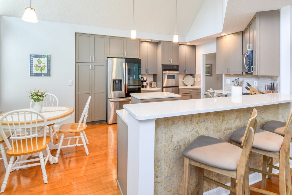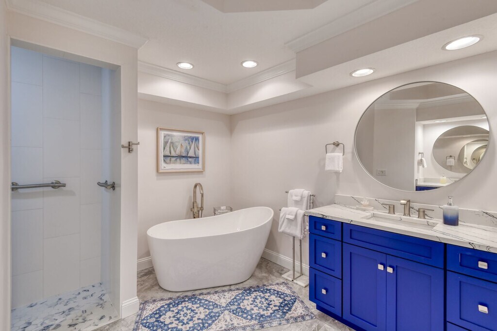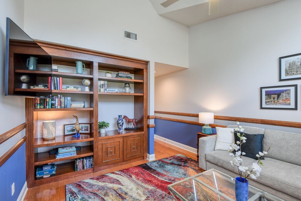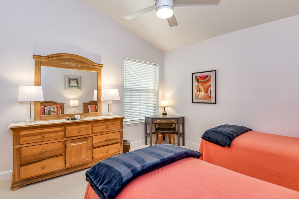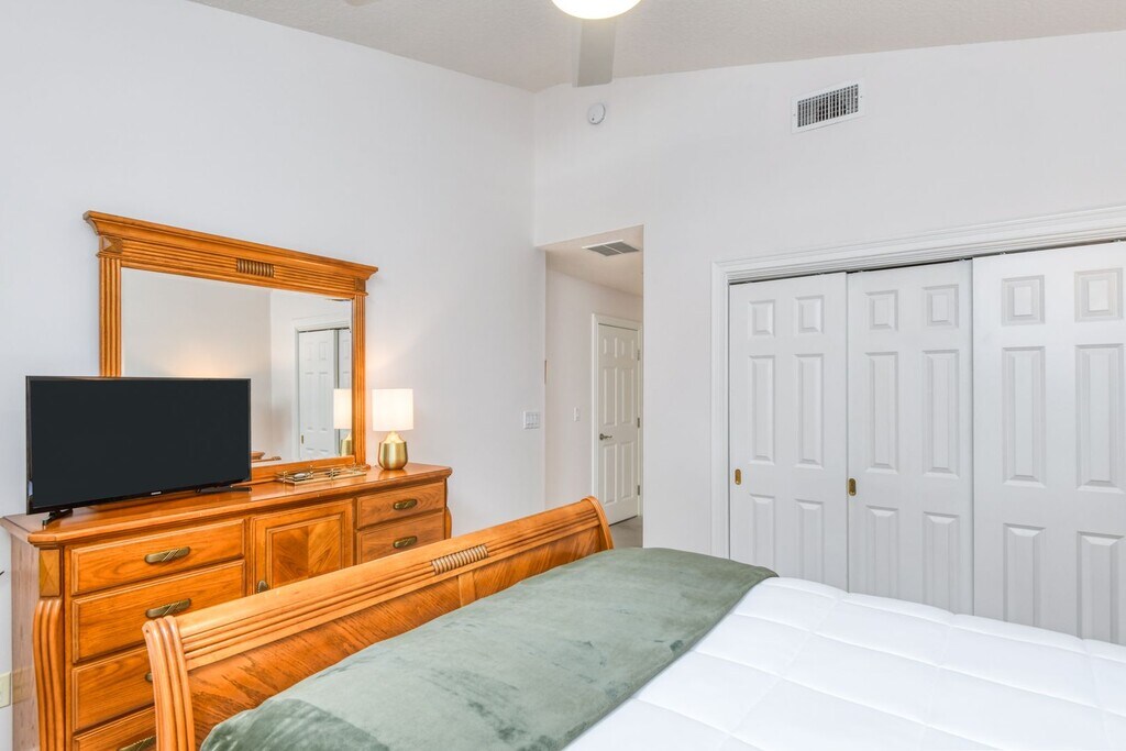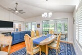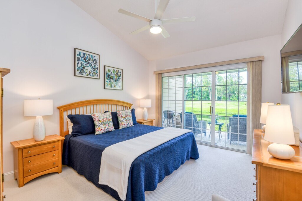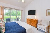 Beautifully furnished 3BR/4BA ground-floor end unit in The Residences at World Golf Village, a gated community. This spacious condo offers peaceful lagoon views, an open layout, and resort-style living with every comfort included. The chef’s kitchen features brand-new stainless steel appliances, ample counter space, and a sunny breakfast nook. The living and dining areas open to a screened lanai overlooking the water, ideal for relaxing or entertaining. Each bedroom has its own private bath, including the primary suite with walk-in shower, soaking tub, and access to a separate patio with seating and BBQ. A versatile den includes a sleeper sofa and full bath—perfect for guests or a home office. Additional features include a laundry room with new full-size washer/dryer, walk-in showers, high-capacity TVs with DIRECTV streaming, 1-car garage, driveway parking with overflow nearby, and available baby gear/beach items upon request, subject to availability. Enjoy the tranquility of lagoon views combined with the convenience of a single-level home in a sought-after resort-style community. No pets.