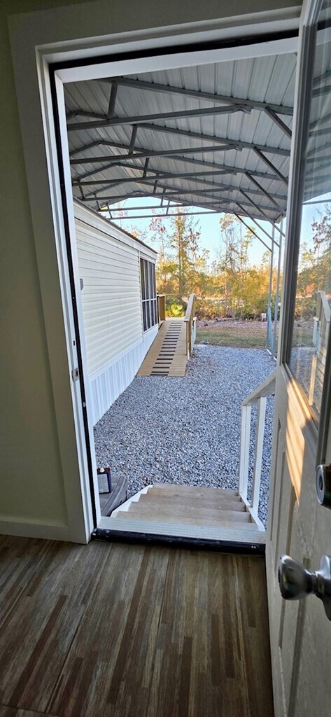 *For Rent Only* Nestled on approximately 2 acres of serene, park-like surroundings, this 1 bedroom, 1 bath single wide mobile home, situated beneath a pole barn, offers comfort, privacy, and a relaxed coastal lifestyle. The unfurnished home features an open-concept living, dining, and kitchen area with a vaulted ceiling, creating a spacious and airy atmosphere. The kitchen is well-sized with ample cabinet space and comes equipped with a stove and refrigerator. The bedroom includes a generous walk-in closet, providing excellent storage. Additional highlights include an attached screened porch, an outdoor shower, and a covered carport, offering convenient parking and outdoor functionality. The pole barn structure provides added protection from the elements and enhances the home's usability, while the surrounding acreage offers a peaceful, private setting. Located just a short distance to a public boat launch and beautiful white sandy beaches, this property delivers the ideal blend of tranquility and coastal convenience. Available now at $1,400 per month on a one-year lease with a $1,400 security deposit. Tenant pays utilities. A small pet may be considered with a refundable pet deposit. No application fee; however, if approved, a $32 credit/background check fee applies