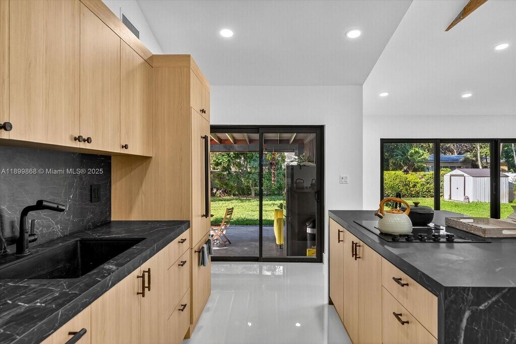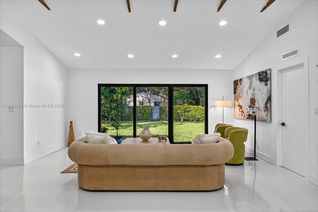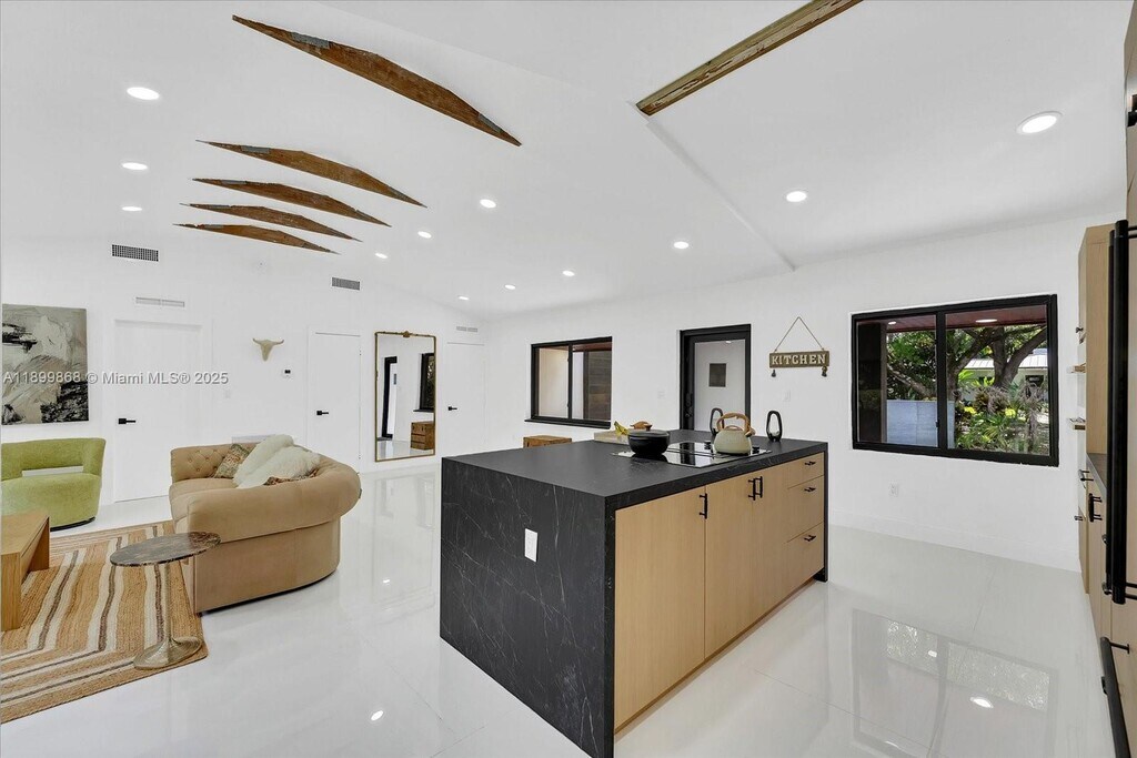 Experience modern living in this beautifully updated 3-bedroom, 3.5-bath Miami Shores home. Thoughtfully redesigned with stylish details throughout, it features an inviting open floor plan with a seamless flow between the living, dining, and kitchen areas. The chef’s kitchen boasts Quartz countertops, La Belle Antique Blue backsplash, and custom white cabinetry with top-quality appliances. The converted garage provides two additional rooms, ideal for an office, gym, or guest space. Step outside to a private backyard retreat with a large patio, BBQ station, and bar, perfect for entertaining or adding a pool. Equipped with a Tesla EV charger, new roof, and impact windows. Move-in ready and perfectly located in one of Miami’s most desirable neighborhoods.