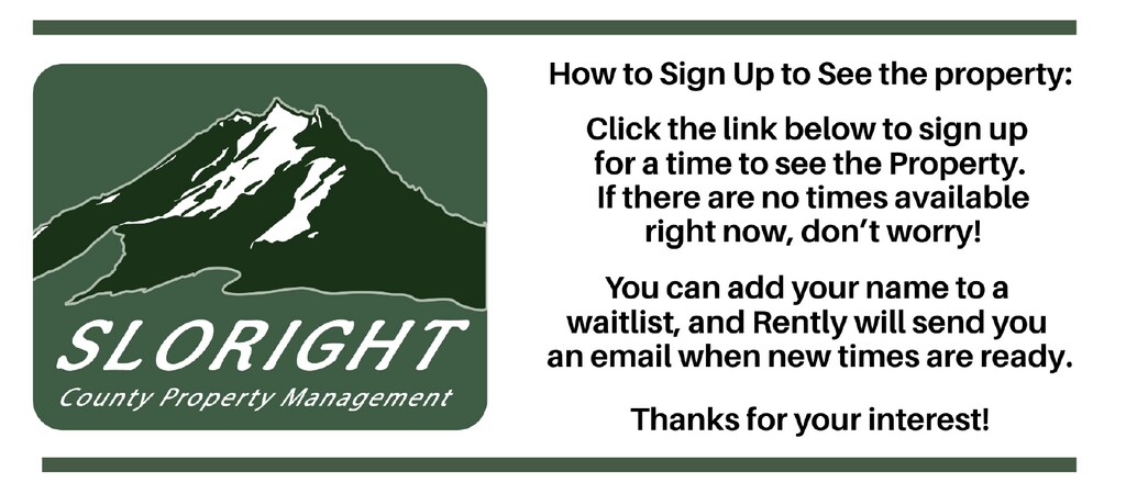 The showing link to this property is: View Showing Availability Featuring a stunning coastal retreat in Pismo Beach. This spacious 1,764-square-foot home offers two beautifully appointed bedrooms, each providing a tranquil haven for rest and relaxation. The two full bathrooms are thoughtfully designed to enhance your comfort and convenience, making daily routines feel luxurious. Nestled in the heart of Pismo Beach, this property allows you to experience the perfect blend of beachside charm and modern living. Imagine waking up to the gentle sounds of the ocean breeze and spending your evenings enjoying the vibrant local culture. The open floor plan creates an inviting atmosphere, ideal for entertaining guests or simply unwinding after a day of exploring the scenic surroundings. Large windows bathe the interior with natural light, highlighting the elegant details and creating a warm, welcoming ambiance. With its prime location, you're just moments away from the beach, local dining, and shopping, offering endless opportunities for adventure. Embrace the coastal lifestyle where every day feels like a vacation in your own private paradise. 12 Month Lease. Owner is willing to consider a small pet. No smoking is allowed inside the home. The tenant is responsible for all utilities associated with the property. When applying to lease with our company you will have to create either a pet/animal profile or a no-pet profile using our firm’s third-party screening service. If selected as a tenant, a Move-in Fee of $49 per household is required. The fee covers a move-in inspection including digital records of property conditions for tenant protection. DO NOT DISTURB CURRENT TENANTS. DOING SO WILL PROHIBIT YOU FROM RENTING THE PROPERTY. You must view the property with a SLORIGHT associate. Applications can be submitted through our website To apply online, locate the advertisement of the property you are interested in under the “Search Rentals” page and select “Apply Now” to begin. Applications will only be considered once the proposed applicant has attended a SLORIGHT showing for the property. To register for a showing, please click on the link in the description below. If there are currently no available showing times, fill out the information on the right side of the page and select “Join Waitlist” you will be placed on our interest list to be contacted via email or text message when showing times are available. Park Place, Pismo Beach CA DRE Broker's Lic # 0187602