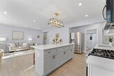 Beautifully renovated home spanning the second and third floors in a two-family house,offers style and comfort near Chestnut Hill in West Roxbury,minutes from Centre Street and Commuter Rail. The unit is located on the first floor with four bedrooms and two elegant full bathrooms. The contemporary kitchen features custom cabinetry,an oversized island,and quartz countertops,with a laundry room and pantry space conveniently located adjacent. Natural light fills the unit,enhancing its open feel. Outdoor spaces include charming front and side porches. The property also offers one garage parking space,two paved parking spaces,two finished basement rooms,and access to a shared storage shed. This extensively renovated building features new electrical,plumbing,sewer liner,HVAC systems,and insulation,ensuring optimal efficiency and comfort. MLS# 73423547