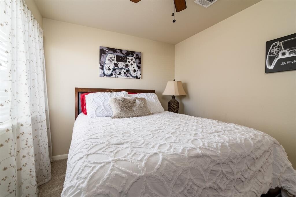 Located in desirable Post Oak neighborhood, conveniently located close to schools, shopping, Ascension Seton Hays Hospital, IH-35 and downtown Kyle. Open and airy floor plan with high ceilings. Meticulously cared for and gently lived in since new carpets were installed in July 2023. Guest bedrooms are located in the front of the property with a full bathroom, The primary bedroom is separated and located in the rear of the home with a large walk-in closet, dual vanities and separate tub and shower in the bright clean bathroom. The kitchen opens to the living room and breakfast area for an open and bright feel. Hot water heater replaced in Dec 2022 and a new microwave oven in July 2023.Large private backyard with covered patio for entertaining guests or relaxing outdoors. Neighborhood amenities include community pool and sport courts.