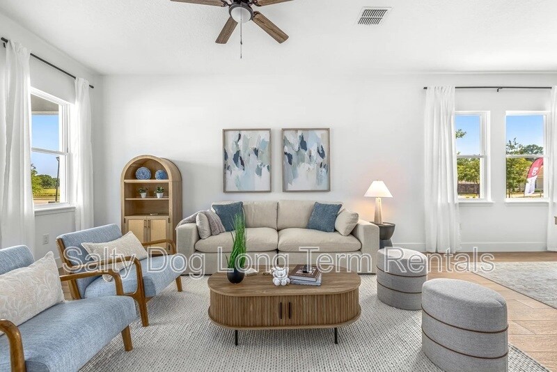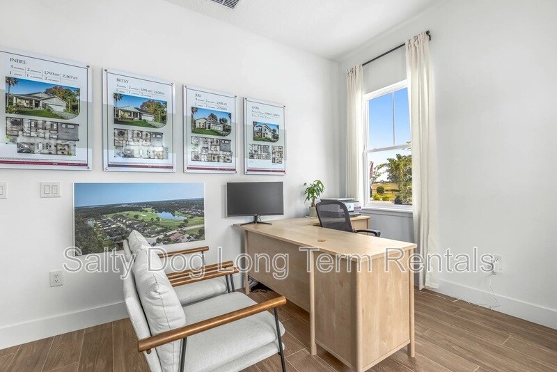 The "Besty" model home of the Graw Hawk subdivision in LPGA is now available for annual lease! This home features top-of-the-line finishes, to include granite countertops, stainless steel appliances, tile wood plank flooring, large walk-in primary shower and eco-friendly windows and doors. Outside features both a covered front patio and covered back patio with views of the golf course, pond and walking trails. Call today to schedule a tour!