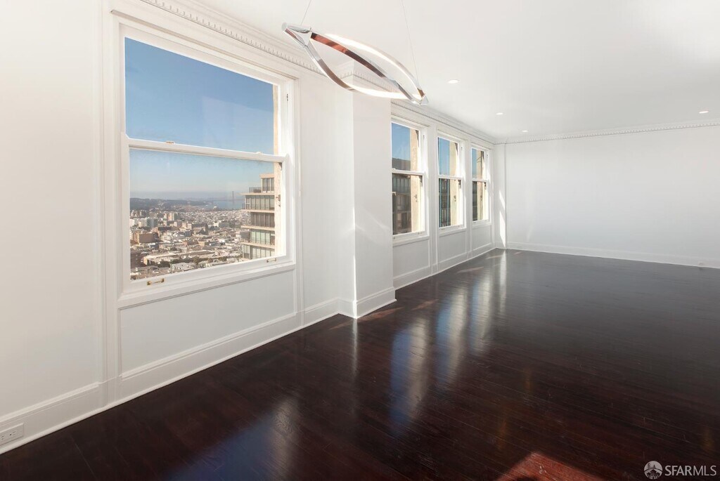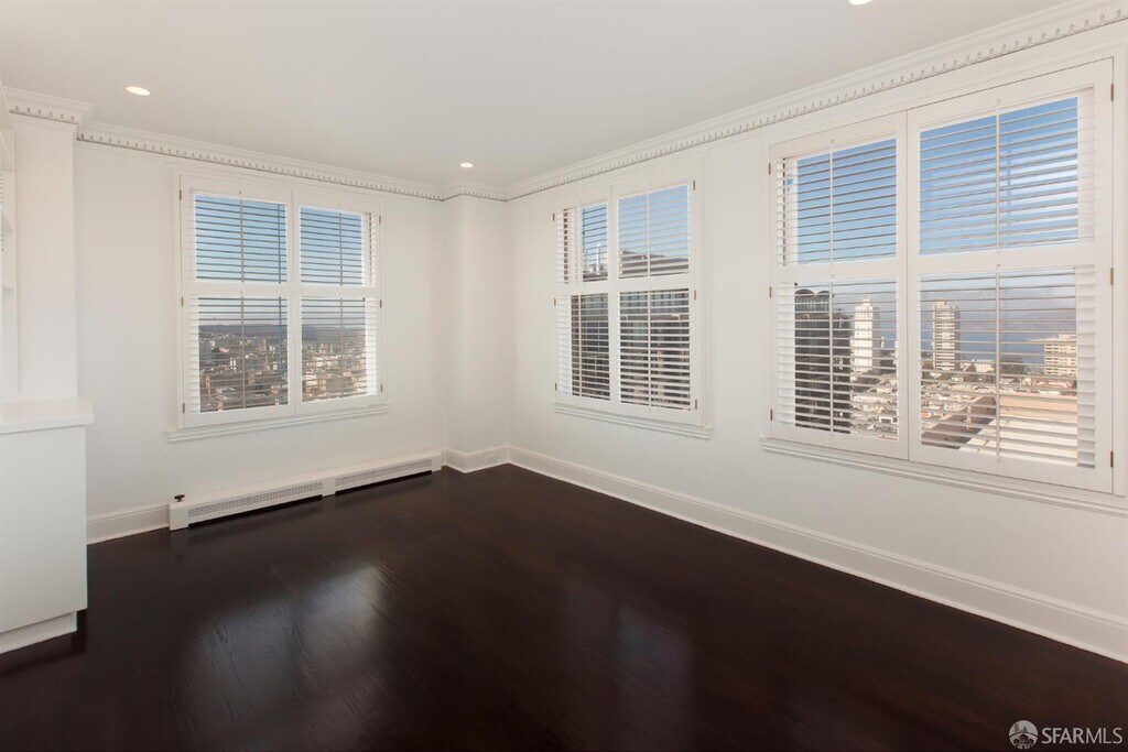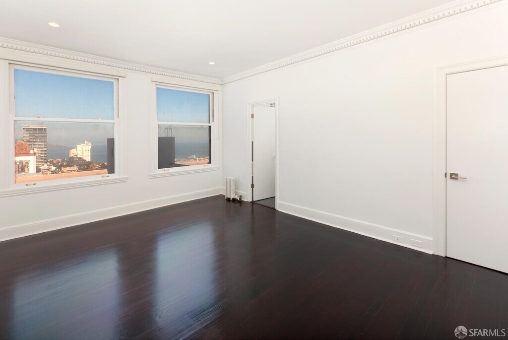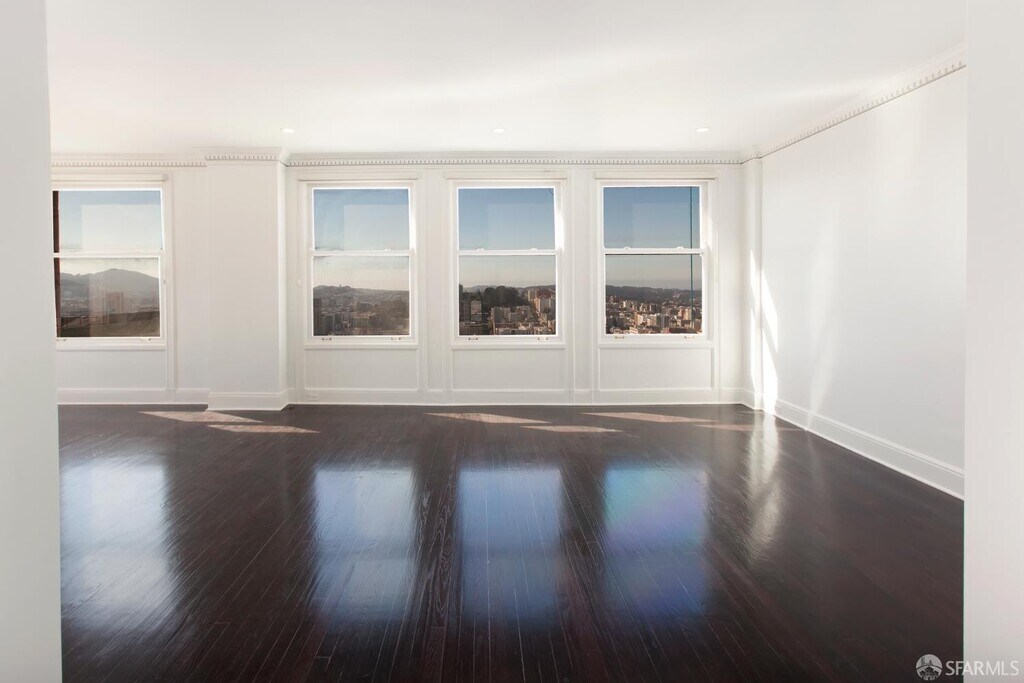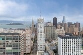 This tastefully updated half-floor residence fuses Manhattan polish with cutting-edge San Francisco style. Perched atop Nob Hill in iconic c1929 The Clay-Jones building, it spans the front half of the 14th floor, illuminated by 14 windows facing south, west, and north, framing sweeping sunset views of Grace Cathedral, the city skyline, Alcatraz, Coit Tower, and even glimpses of the Golden Gate Bridge. With a stylishly open kitchen and large island for dining/entertaining and remodeled baths, the home's crisp modern finishes harmonize with architectural dentil mouldings, hardwood floors, high ceilings, built-ins, abundant closets, and in-unit laundry. Generous scale rooms create an ideal backdrop for entertaining, classic yet contemporary. 2 bedrooms have fabulous views, plus there is a flexible office/small 3rd BR space. Rent includes 24/7 door person, parking, all utilities, basic cable, storage, a common sun deck, and exterior window washing. Hear cathedral bells, hop aboard a historic cable car, or stroll with your pup to charming Huntington Park just 1.5 blocks away. Effortless access to FiDi, Union Square, and the vibrant bistros, bars, and boutiques of Polk Street or North Beach, this chic home places you at the heart of San Francisco to stream your best moments.