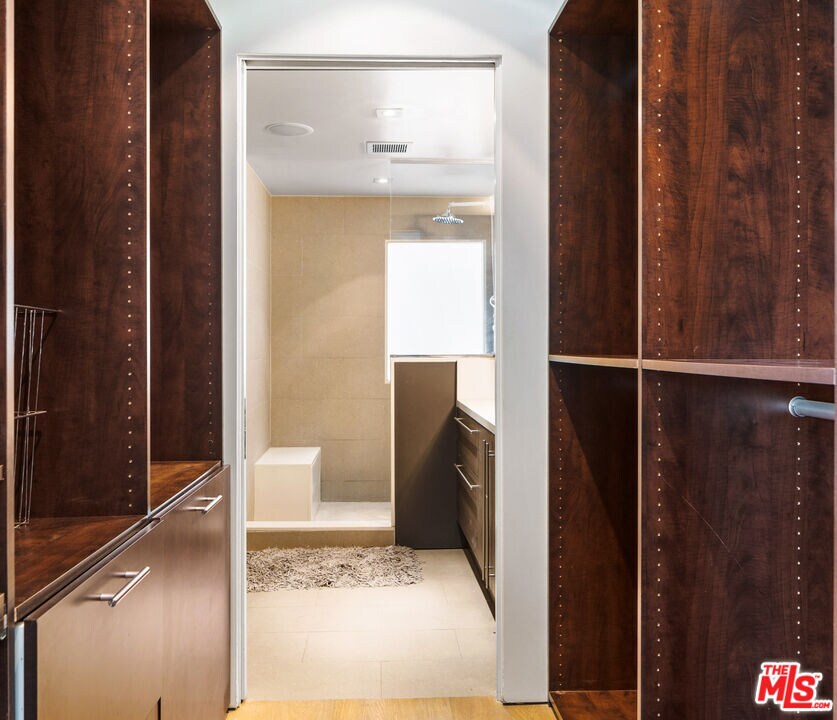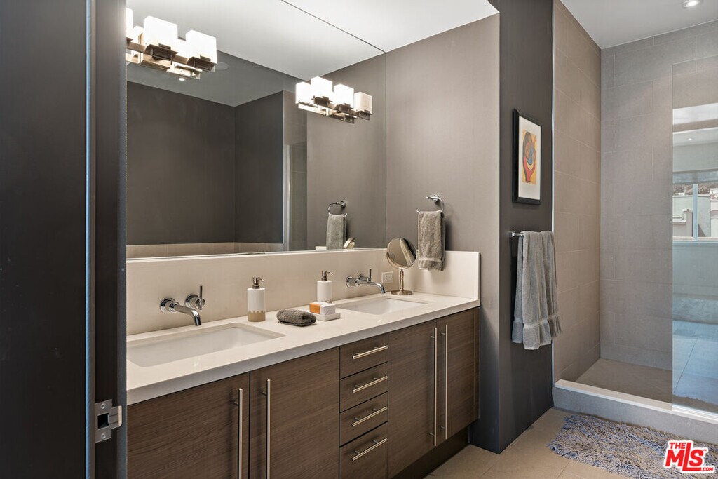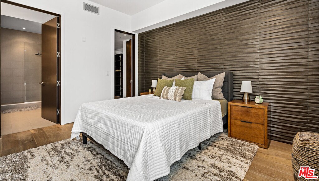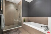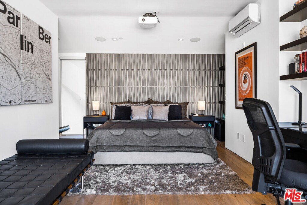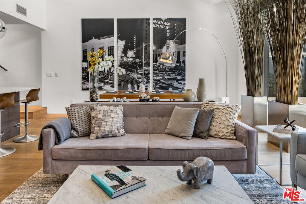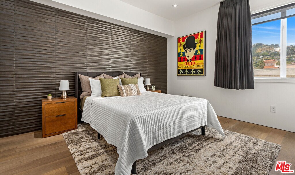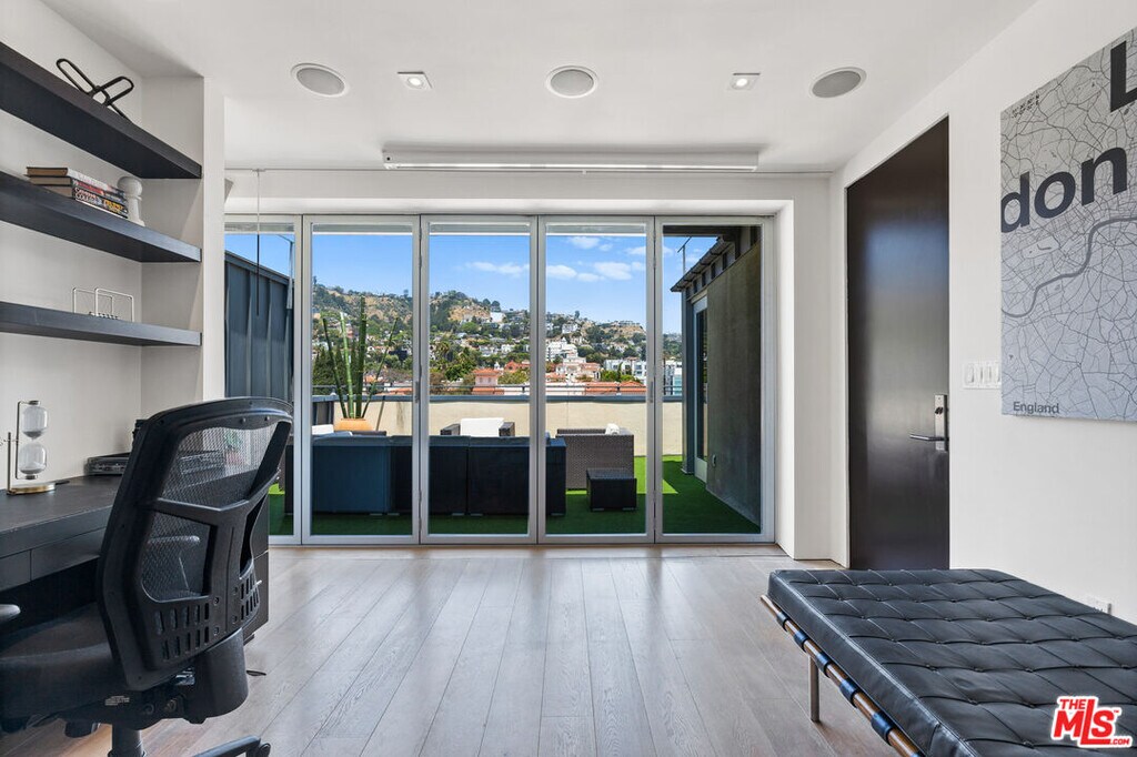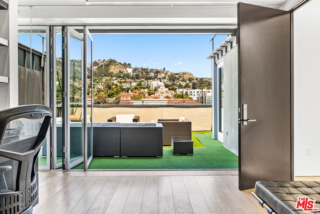 Video tour available of this furnished rental. This furnished, turn-key penthouse is set in one of West Hollywood's most coveted locations, offering a refined blend of privacy, natural light, and elevated design. South-facing and drenched in sunlight, the expansive living room showcases soaring vaulted ceilings and an open layout ideal for entertaining. The 2-bedroom, 2-bath residence spans approximately 1,800 square feet and is thoughtfully curated with high-end finishes, beautiful lighting, and designer details throughout. The first-floor bedroom features a large walk-in closet and a spa-like en-suite with soaking tub, separate shower, and double vanity, while a discreet hallway pantry provides exceptional hidden storage. Floor-to-ceiling windows in the living area frame sweeping city views and are fitted with custom shades for privacy. The designer kitchen anchors the space with a large island seating four, stainless steel appliances, abundant cabinetry, and comes fully equipped with plates, silverware, and everyday essentials. Upstairs, the private primary retreat offers generous closet space, an en-suite bath, and a built-in desk. The true showstoppers, however, are the in-home movie projector and the private rooftop deck complete with folding floor-to-ceiling glass doors that create seamless indoor-outdoor living. Entertain on the private rooftop while enjoying breathtaking Hollywood Hills views from sunrise to sunset and into the city lights. Additional features in this pet friendly retreat include a private laundry room, side-by-side underground gated parking/EV charger, and a secure building with coded elevator access. MLS# 26644783
