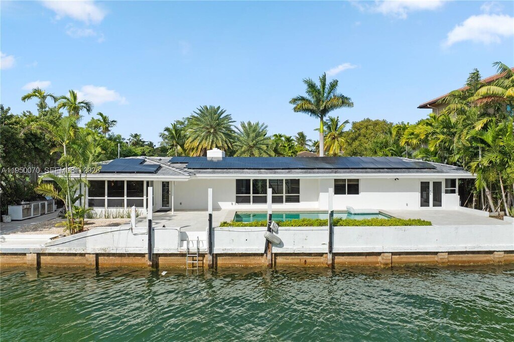 Rare waterfront home in desirable Davis Harbor. 110 FT of direct Biscayne Bay frontage on an 11,258 SF lot. Fully renovated 5-bedroom, 4.5-bath residence with 4,000+ SF of living area. Italian travertine floors throughout and custom handcrafted cabinetry. Bright living room with marble fireplace and bay views. Garden entry creates a private, tranquil arrival. Ample kitchen with oversized marble island and premium Miele and Bosch appliances. Ideal layout for entertaining. Resort-style backyard with pool, multiple lounge areas, and built-in BBQ. Spacious primary suite with direct outdoor access and spa-style bath featuring soaking tub, rain shower, and double vanities. Four additional bedrooms, three with en-suite baths. One-of-a-kind bayfront opportunity. MLS # A11950070