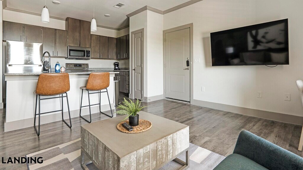 Landing is a top-rated, fully furnished apartment network with thousands of homes across 250+ U.S. cities. With premium amenities, a mobile app to manage your stay, and 24/7 support. Our apartments have everything you need for monthly and longer stays. 6-Month+ Stay base rent: starts at $1635/mo 12-Month+ Stay base rent: starts at $1510/mo Landing's apartments at The Flats at Shadowglen are designed for comfortable, easy living, with the ability to stay as long as you like. All Landing apartments include: - Fast Wi-Fi - Stylish furnishings - Fully-stocked bathroom - Smart TVs - Comfortable bed - Professionally cleaned - Guest support Stay longer for cheaper! The longer you stay, the bigger your discount. Price advertised is for a 12-month stay, including all utilities and fees, and may vary based on availability. We manage multiple units at this property. While all feature a similar style and furnishings, the layout and specific design elements may vary slightly from the photos provided. Some of the nitty-gritty: a background check and proof of income are required; we're completely smoke-free; pet-friendly options are available; parking is subject to availability.