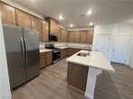Brand-new townhome featuring cozy, modern touches throughout. Ideally situated across from an up-and-coming community park, this two-story home offers a welcoming covered front porch and HOA-maintained landscaping for easy living. This upgraded model includes a private driveway and a two-car garage. Inside, enjoy an open floor plan with 9-foot ceilings and a bright, airy feel. The kitchen is beautifully appointed with an island with seating, pantry, warm wood tone cabinets, brushed nickel hardware, and stainless appliances. Luxury vinyl plank flooring runs throughout the downstairs. Additional features include a tankless water heater for added efficiency. Laundry room is conviently located on the first floor. Washer and Dryer avilable upon request Upstairs, the primary bathroom offers dual sinks and a spacious shower with a built-in bench for comfort and style. . Carpet is featured in all 3 of the bedrooms for warmth and comfort.