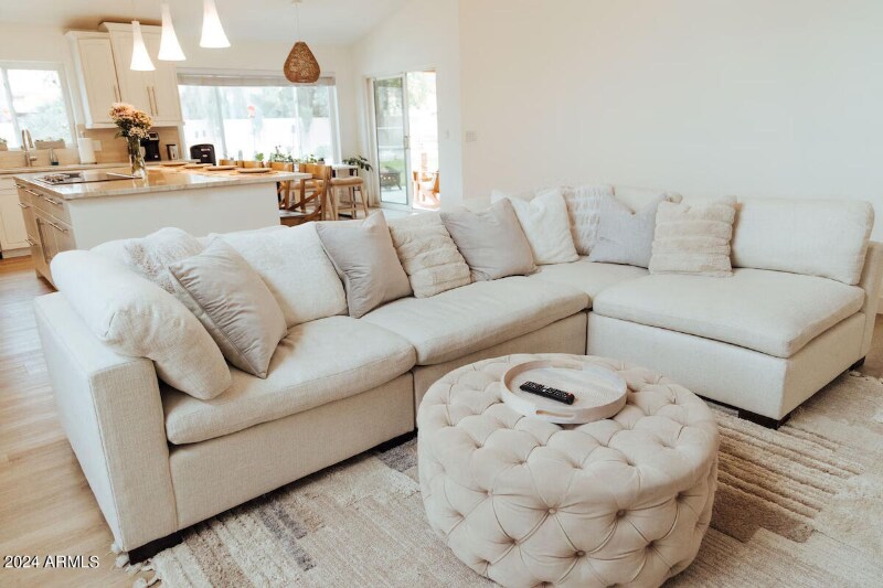 Property Id: 1405705 Welcome to Tres Palmeros — a beautifully renovated 4-bed, 2.5-bath home on a 1/3-acre lot near the Cactus Corridor, perfectly situated between Old Town Scottsdale and Kierland Commons. Fully or partially furnished with long to mid-term lease options available. The great room features soaring 24-ft ceilings and opens to a resort-style backyard with pergola, daybed, pool, spa, putting green, and BBQ. Dining and living areas include a fireplace, wet bar, and seating for eight. The updated kitchen boasts custom cabinetry, granite counters, a 9-ft island, stainless appliances, and a second fireplace. The primary suite offers 17-ft ceilings, walk-in closet, backyard views, and a spa-like bath. Three large guest bedrooms share an updated hall bath with outdoor access. Additional highlights include a 3-car garage, large laundry room, Nest thermostats, Samsung TVs, Sonos soundbar, and designer furnishings from Pottery Barn and Z Gallerie.