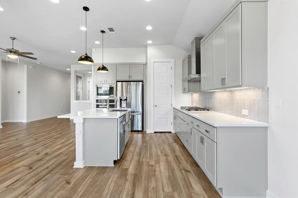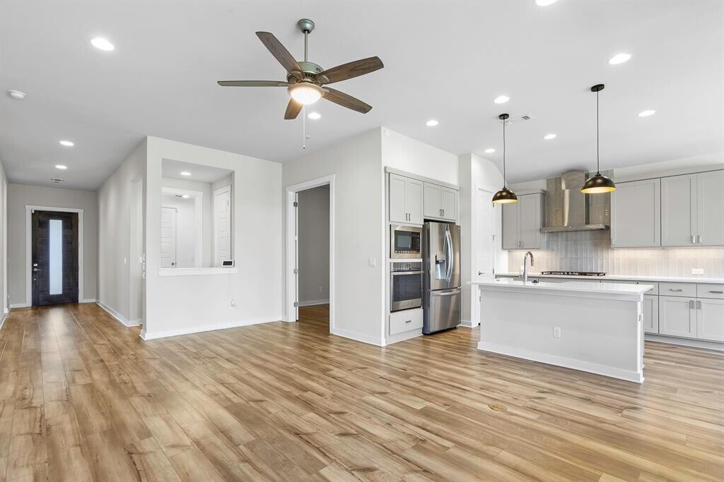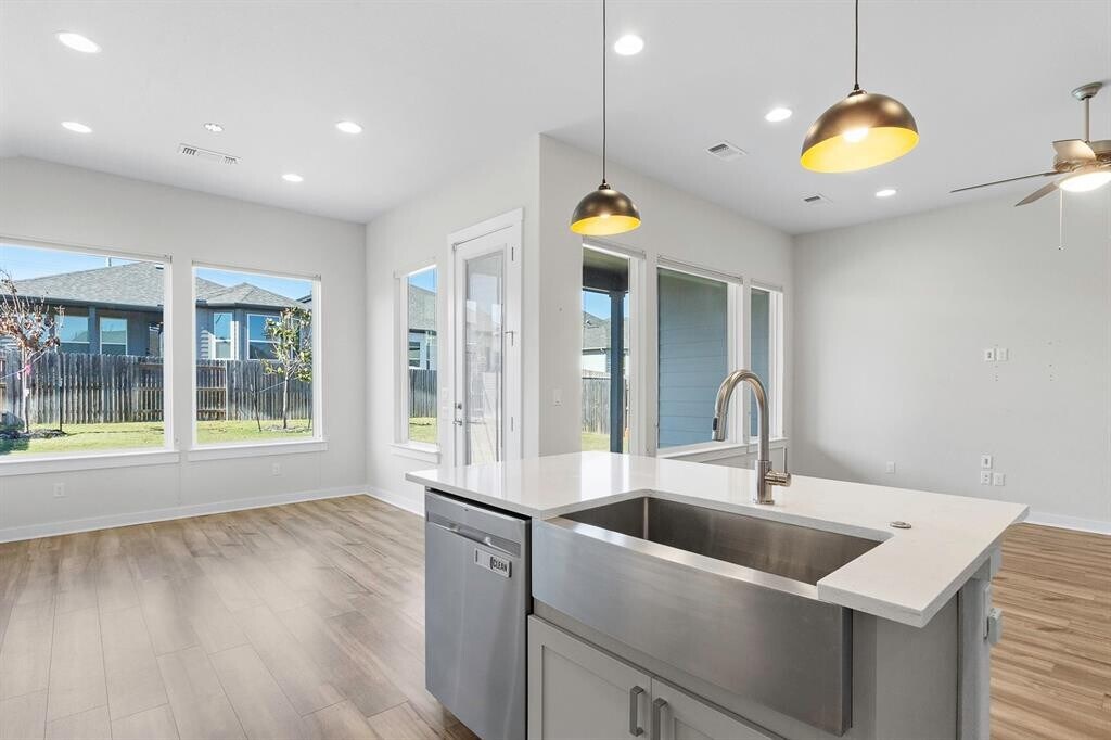 More than just a single-story house, this well-maintained, energy-efficient home offers a warm and inviting layout. The Great Room opens seamlessly to the gourmet kitchen and dining area, featuring a center island, plenty of cabinet space, a pantry, a large single sink, vented hood, gas cooktop, built-in oven, and microwave — perfect for cooking and entertaining. The primary suite is separate from the secondary bedrooms, offering extra privacy. It includes a bright bathroom with dual vanities, a walk-in shower, and a spacious closet. The two secondary bedrooms share a full bath with a tub and shower. There’s also an office/flex space that’s ideal for working from home or could serve as a cozy second living area. Step outside to enjoy the covered back patio, the perfect place to relax and watch the sunset. The community pool is just across the street, accessible by a short walking path. Located only 10 minutes from downtown Buda and its wonderful restaurants, 16 miles from Austin-Bergstrom International Airport, and 14 miles from downtown Austin, this home offers convenience, comfort, and a great lifestyle.