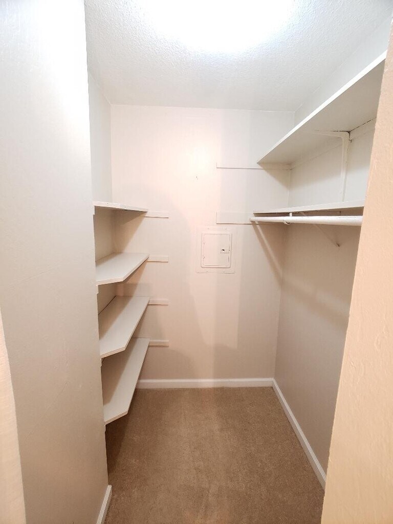 2 bed 2 bath, apx 944 sq ft. Freshly painted. Updated unit on the second floor. Large living room with gas fireplace. Walk-in closet in master bedroom. Community pool. Carport parking. Water and garbage included. Close to downtown.