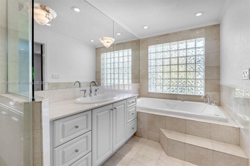Updated ranch-style single-story home in the sought-after Gables by the Sea community. Situated on a quiet double cul-de-sac w/convenient access to the community park w/basketball court & playground. A boaters dream with OCEAN ACCESS to Biscayne Bay from the 100’ seawall & davits. Sleek marble & wood floors. Over 3000 SF offering 4BD 3 full BA, walk-in closets. Extra 5th room w/ensuite cabana bath, ideal for home office, gym or bdrm. Expansive open modern kitchen w/hi-end appliances, 6-burner gas range & wine cooler. FL room complete w/full bar, leads out to the east-facing covered veranda for refreshing al fresco poolside dining. Luxurious pool & spa are heated for year-round enjoyment. Interior Laundry/utility room and a 2-car garage with circular driveway. Full Impact glass, newer AC. MLS # A11848036