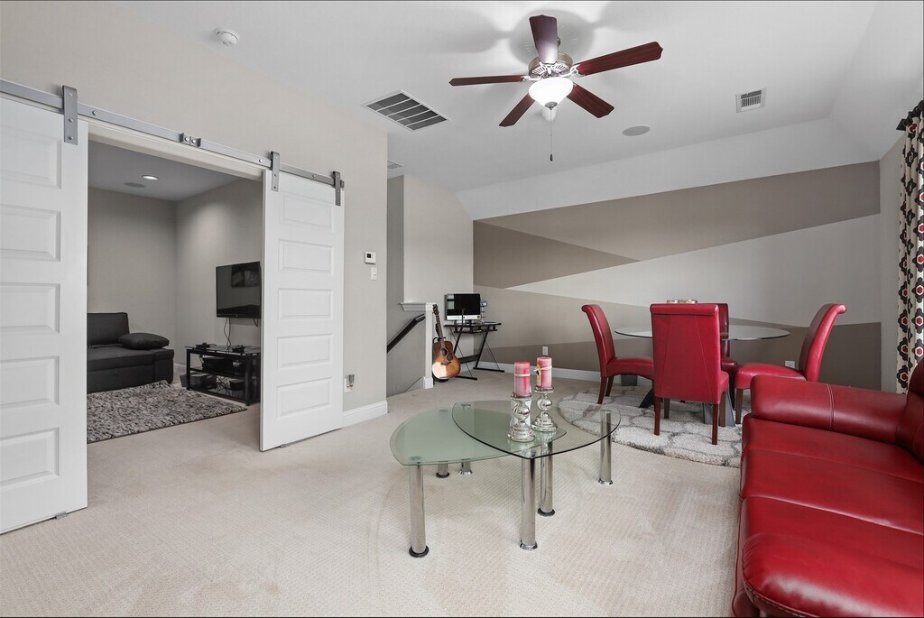 Welcome to this beautiful corner-lot home in a desirable gated community! This spacious 4-bedroom property offers an inviting open-concept layout designed for both comfort and functionality. The main level features multiple bedrooms,office space,and a convenient laundry room. Upstairs,you’ll find a private bedroom perfect for guests or a retreat space. Step outside to a backyard that showcases stunning views,including a serene pond,creating the perfect setting for relaxation or entertaining. With its thoughtful design and ideal location,this home blends everyday convenience with scenic charm. Dickinson ISD schools. MLS# 3180273