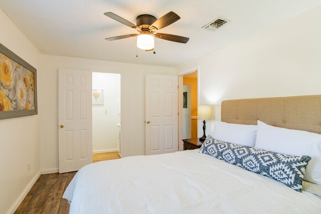 Bright & comfortable Pensacola home central to everything you need such as grocery stores, restaurants, shopping plazas, the mall, a local top-rated coffee shop, airport, hospitals, Parker Circle Neighborhood Park and most importantly, 25 mins to Pensacola Beach! This home provides a spacious living room, dining room, interior laundry, three spread out bedrooms, two full bathrooms, and one half bath. There is a front porch as well as a screened-in back patio to enjoy. Furniture/decor is for staging purposes, but owner is open to any requests for certain pieces of furniture to stay at an increased monthly rent price. Visit Pensacola and start making memories today!