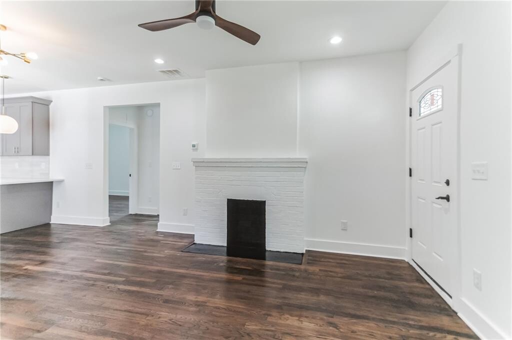 Welcome home to this renovated home conveniently located near Morehouse College,near Mercedes Benz Stadium,and minutes from the highway. Only a single tenant lived here before,the space is still practically new. This home consists of an all-new HVAC unit,plumbing,electrical wiring,appliances (washer / dryer,dishwasher etc.),flooring,windows,and a fresh coat of paint. Walk into a fully the open layout living room and updated kitchen with stainless steel appliances (including washer and dryer),quartz countertops. The home features classic components of the previous home's character with a dual wood-burning fireplace. Throughout the home,you'll notice sleek neutral and warm fixtures that add a modern finish to the home. The spacious rooms with new windows allow for great natural lighting to come in all around the home. The master bedroom has a giant walk in closet and spacious bathroom with a large shower. All bathrooms have been beautifully tiled adding an elegant touch to both. Make your way to the backyard and you'll find yourself on a spaciously built deck and a view of the large fenced-in backyard. Property has security system running,please call before touring!