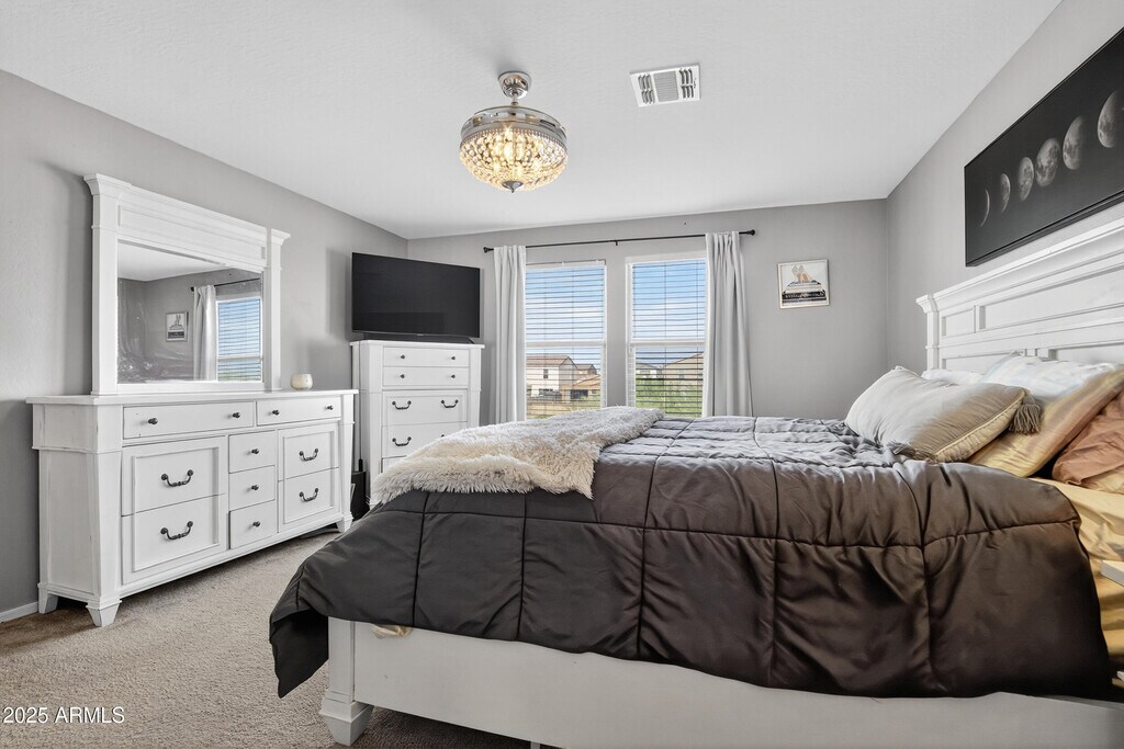 Welcome to this beautifully maintained home in the desirable Marbella Ranch community. Built in 2019,this two-story residence offers 2,068 sq ft of modern living space with 3 bedrooms,2.5 bathrooms,and a spacious loft that can be used as an office,playroom,or additional lounge area. The open layout is filled with natural light and features an upgraded kitchen with stainless steel appliances,a large island,walk-in pantry,and plenty of storage. Upstairs,the primary suite provides a private retreat with a generous walk-in closet and en-suite bath. Situated on a corner lot,the property offers excellent outdoor potential for entertaining or future enhancements. Additional highlights include Energy Star rated construction,a two-car garage,and access to community amenities. Conveniently located near major freeways,Luke Air Force Base,and the Westgate entertainment district,this home combines comfort,efficiency,and convenience in one ideal package.