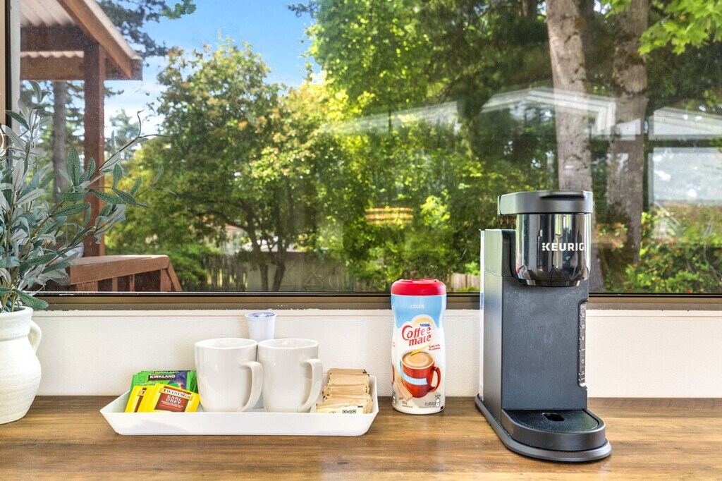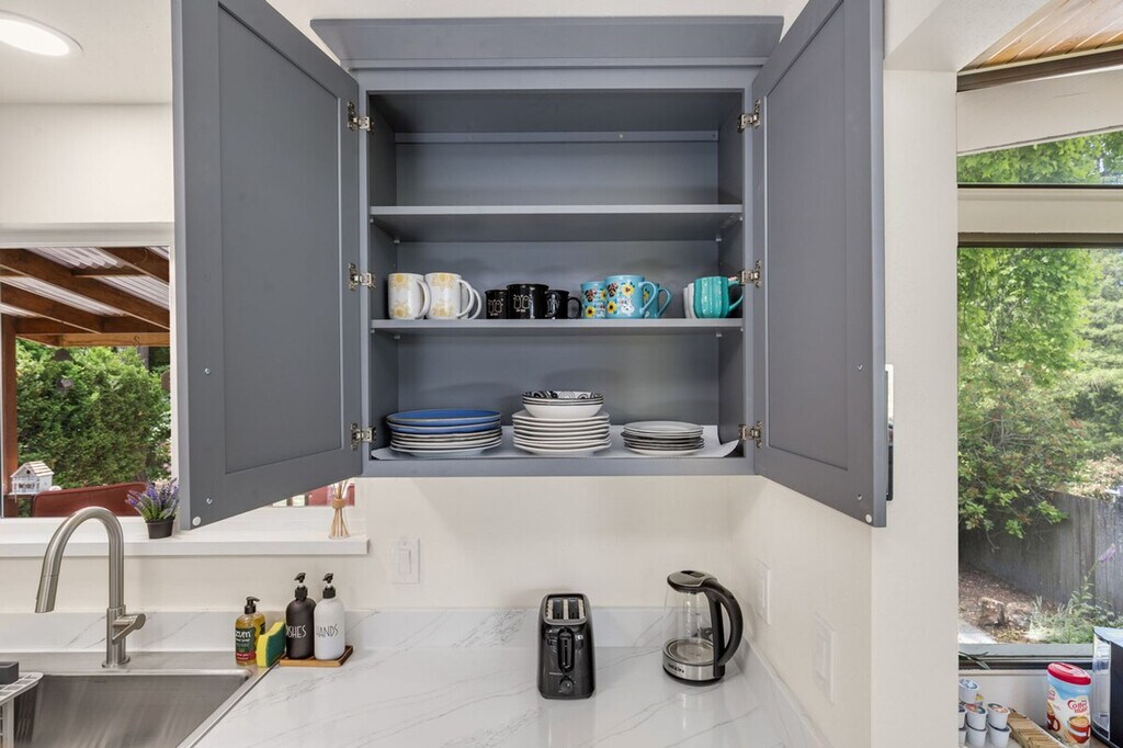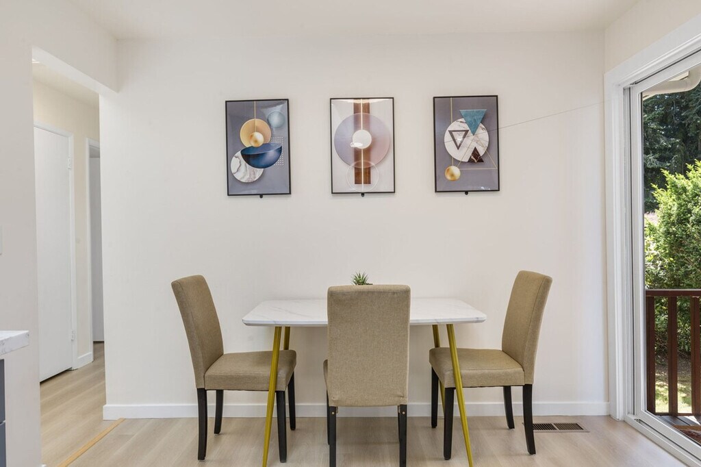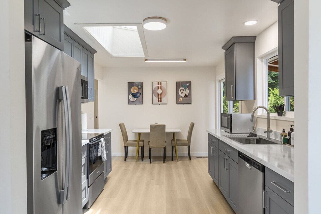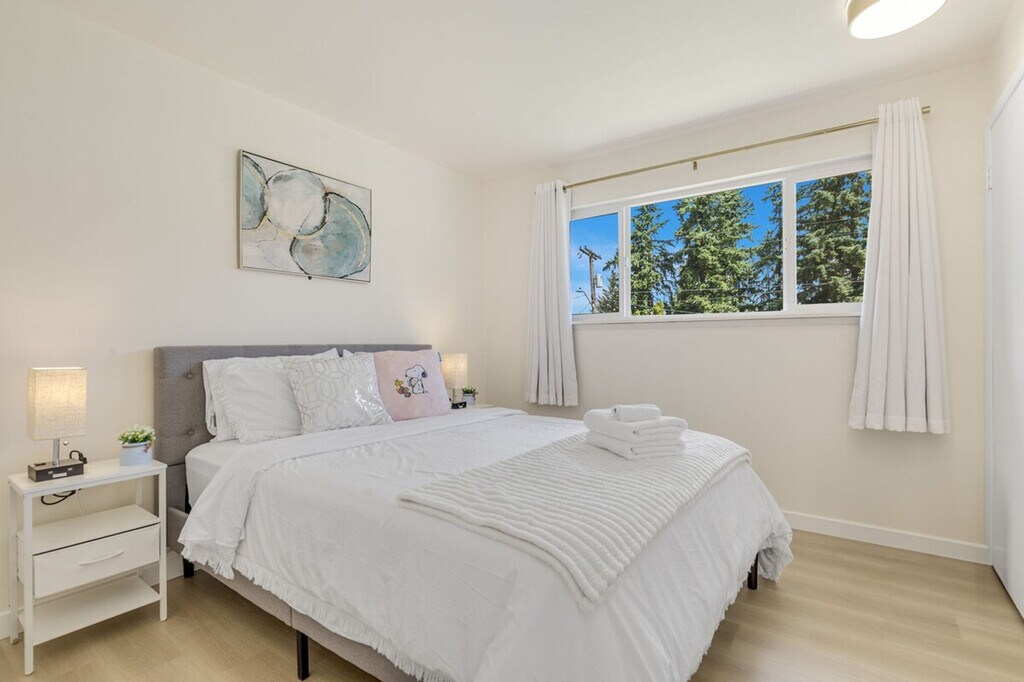 Feel at home in this bright and spacious 4-bedroom Bellevue home with plenty of room to gather and a private backyard. The entrance door is up a set of staircase. This charming Bellevue home features a modern kitchen with all the essentials, bright living areas ideal for relaxing, and cozy bedrooms perfect for unwinding after a long day. The kitchen is stocked with a full range of kitchen appliances, cookware, silverware, servingware, spices, coffee and tea. All beds are outfitted with high-quality mattresses, linens, and a comfortable duvet. Enjoy big windows and a skylight with lots of natural light, and an on-site washer and dryer for your laundry needs. Well-trained pets are welcome with a fee of $50 per pet per night. Conveniently located just minutes from downtown Bellevue in one of the city’s most accessible neighborhoods, this home is close to everyday essentials, parks, and shopping. It's also a short drive from Newcastle Golf Course, T-Mobile headquarters, downtown Bellevue, and scenic hiking trails in nearby Coal Creek and Cougar Mountain. This is a pet-friendly home, so kindly refrain from allowing pets on furniture and linens, including couches, throws, beds, pillows, and towels. Please do not leave pets unattended and bring poop bags to pick up after your pets. Strictly no parties and events are allowed, and quiet hours are between 10 pm and 8 am. There is a $500 fine per violation for no parties, events, smoking or vaping of any kind anywhere on the property including outdoor areas, no digital piracy, and no shoes in the home. [SI]