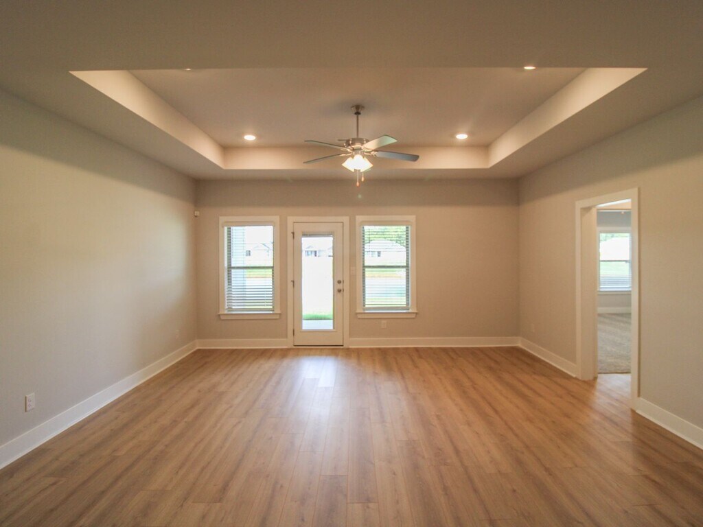 Beautiful townhome located minutes from Athens and Madison. This open floor plan features 3 bedrooms, 2 baths, spacious kitchen with stainless steel appliances and granite countertops, living area is open to the kitchen and dining area, private owner's suite with try ceiling and private bath with double vanity, tile shower and soaking tub. The spare bedrooms share a hall bath. This townhome has a two car front entry garage, sodded yard and great views of the lake behind the townhome. A must see!