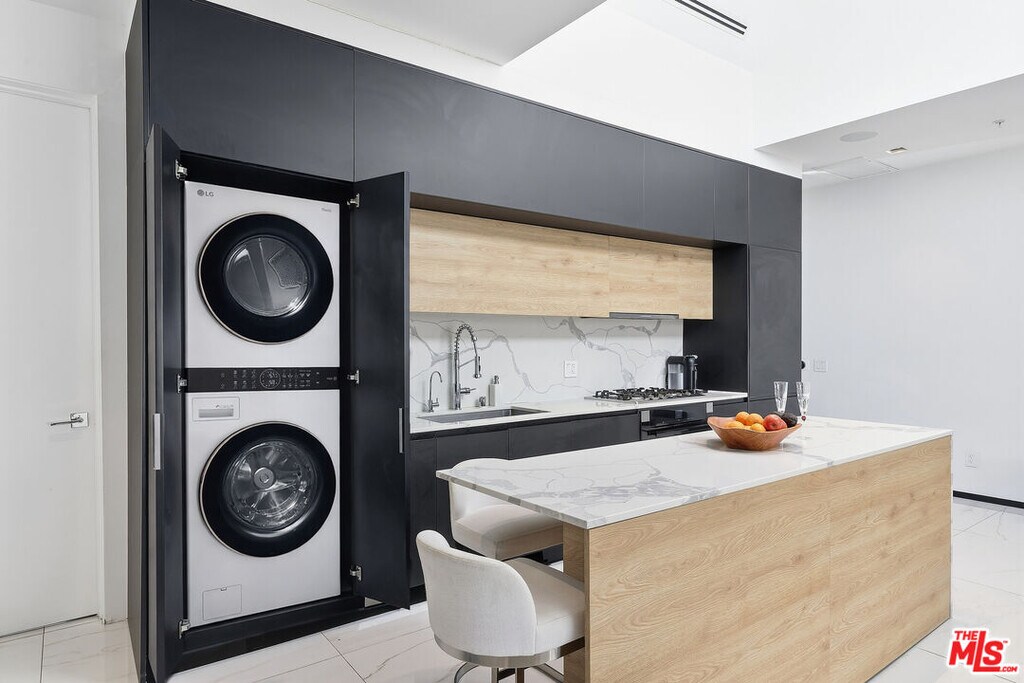 Boutique Design Meets Turnkey Comfort in WeHo. This fully furnished 1-bedroom designer residence delivers a complete lifestyle experience in the heart of West Hollywood. Dramatic vaulted ceilings and a custom skylight frame the open living space, featuring Rove Concepts and RH furnishings as well as Hermes and Louis Vuitton accents. The chef's kitchen boasts Miele appliances, Italian matte-black cabinetry, and a waterfall-edge island. Smart features include SONOS surround sound throughout (including on the private rooftop deck), Nest climate control, blackout blinds, and a sleek in-closet washer/dryer. The spa-style bath rivals a five-star hotel with ambient lighting and a rain shower. Top it all off: the private rooftop deck comes fully equipped with dining + lounge furniture, BBQ, string lights, and skyline views. Two gated parking spaces with EV charger included. This fully furnished rental comes centrally located in a boutique 8-unit building just steps from Melrose and Santa Monica Blvd with local hotspots like Laurel Hardware, Ysabel, Barney's Beanery, and WholeFoods. This condo is a curated blend of modern luxury and smart convenience. MLS# 26640473