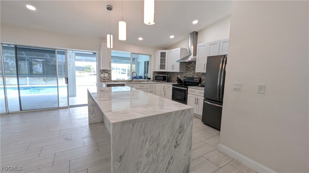 Stunning Waterfront Pool Home for Rent – Gulf Access! Experience the ultimate Florida lifestyle in this beautifully remodeled 3-bedroom,2-bathroom home on 146’ of waterfront frontage with West-facing backyard,offering breathtaking sunsets over expansive connecting canals. Enjoy your private pool with serene water views,oversized lot,and garage. The home has been freshly painted and upgraded with new floor tiles,modern bathrooms,and a fully remodeled kitchen featuring a large island—perfect for entertaining. Open-concept living ensures every main room captures the pool and canal vistas. Boating enthusiasts will love the Gulf access. Tenant is responsible for electricity and maintenance. No smoking inside; small dog allowed with pet deposit. Good credit and employment verification required. Don’t miss this rare waterfront gem—schedule your showing today!