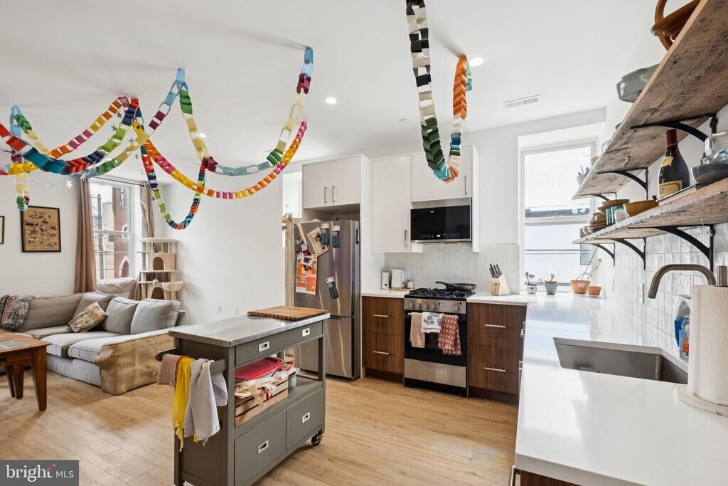 Experience the perfect blend of historic charm and modern comfort in this brand-new, never-before-occupied 1-bedroom, 1-bathroom residence at 1254-6 S 18th St, Unit 1, located in a beautifully renovated and converted building on the corner of 18th and Wharton. Retaining its original wood and brick detailing, this thoughtfully designed unit features high ceilings, durable luxury vinyl floors, and an open-concept living area highlighted by exposed brick from the former passageway between the previously conjoined buildings. The well-appointed kitchen is neatly tucked away, featuring walnut cabinets, quartz countertops, ceramic tile backsplashes, stainless steel appliances, gas cooking, a garbage disposal, and high-efficiency hot water on demand. The spacious bedroom offers two large closets and oversized south-facing windows that flood the space with sunlight all day long, while the sleek bathroom includes a combination tub/shower and clean ceramic tiling. Additional conveniences include in-unit laundry, an electronic door code entry system, a bike room, and pet-friendly accommodations (maximum of 2 pets, 1 dog up to 50 lbs). Ideally located in vibrant Point Breeze, this home is nestled between the Ellsworth-Federal and Tasker-Morris BSL stops, just steps from exciting new restaurants and local favorites like American Sardine Bar. Plus, head straight down 18th Street, and you'll find yourself in the heart of Center City. Don’t miss the chance to be the first to call this stunning space home!