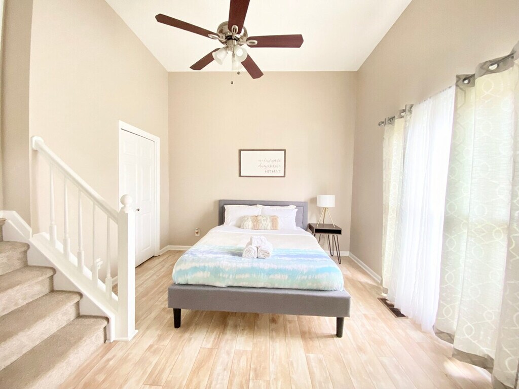 Situated in a prime location close to I-85, this spacious home offers easy access to shops, restaurants, hospitals, and more. Just 30 minutes from Downtown Atlanta, the property is only 5 minutes away from the Gas South Arena, making it perfect for event-goers. Guests will feel at home with access to the entire house, which includes four bedrooms, a large bonus room, a cozy kitchen, and a spacious back deck and yard ideal for entertaining. The house features a cozy kitchen equipped with basic kitchenware, allowing guests to prepare simple meals. A washer and dryer are included for added convenience. The large back deck and backyard provide an excellent space for entertaining and relaxation. Extra bedding sheets for air mattresses and bath towels are provided for parties of 8 guests or more and are available upon prior request at booking. Mid-stay cleaning services can be requested for an additional fee. Pets may be approved with prior authorization, and a nonrefundable pet fee of $150 per pet per stay applies, with a maximum of two pets allowed. Located in a nice and safe neighborhood, the home is surrounded by local eateries and markets offering a variety of ethnic cuisines and groceries. With quick access to the highway, guests can easily reach Downtown Atlanta in just 30 minutes. Check-in is at 4 pm, and check-out is strictly at 10 am, with a penalty fee of half the night’s stay for late check-out. No smoking is allowed inside or outside within 10 ft of the property, with a $250 cleaning charge for violations. The property has a maximum capacity of 10 people, and no unregistered guests are allowed overnight. A pet-free policy is in place unless prior authorization is given. The house is equipped with cameras outside for security, ensuring privacy inside. Guests must include all individuals in their booking and provide full names and ages within 24 hours of check-in. The property is not responsible for any pests due to the Georgia climate, and guests are advised to keep doors closed to prevent pests from entering. [SI]