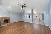 CLEAN 1 story 4br 2bath split floor planned home with fresh paint; kitchen with black appliances open up to breakfast nook and living area; master has large walk in closet; double sinks and separate shower with garden tub; decorative lighting and ceiling fans throughout; nice sized back yard with covered patio for those summer barbecues. Roof and downspouts replaced November 2020; fresh paint inside and out.