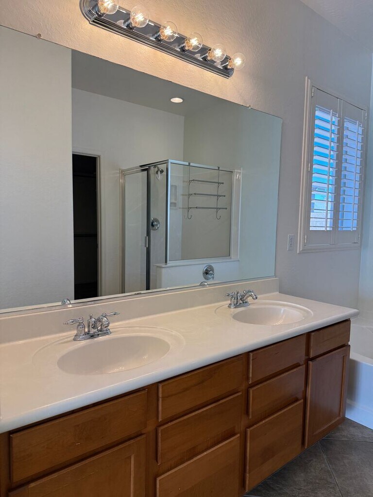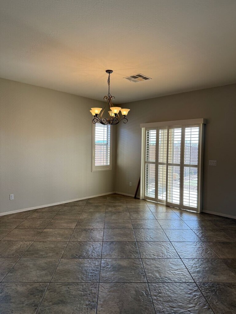 Formal entry into this 3 bedroom + Office/Den home features a mosaic tile welcome and custom window shutters throughout. Enjoy the split floor plan with open kitchen, living and dining space that leads out to a nice backyard, covered patio, easy care artificial turf and electric sun screens that surround the patio. The master suite and bathroom has dual sink vanity, garden tub, step in shower and walk-in closet. The office/den has wood laminate flooring, bedrooms have carpet and the rest of the home has tile. Laundry room that leads out to the 2-car garage has upper cabinets for supplies. Non-smoking property. Students welcome. Tenants pay all utilities. Minimum 12 month lease, Rent + Deposit. MAX 2 animals over 3 yrs old (AAO excepted) - $250 per animal deposit, insurance and $50 per month pet rent required. Application Fee $45/adult + $10/mo Maintenance Call Center Fee + $12/mo Filter Fee + $50 Admin Lease Fee (one time). All occupants 18yrs+ must complete an application AND complete screening on