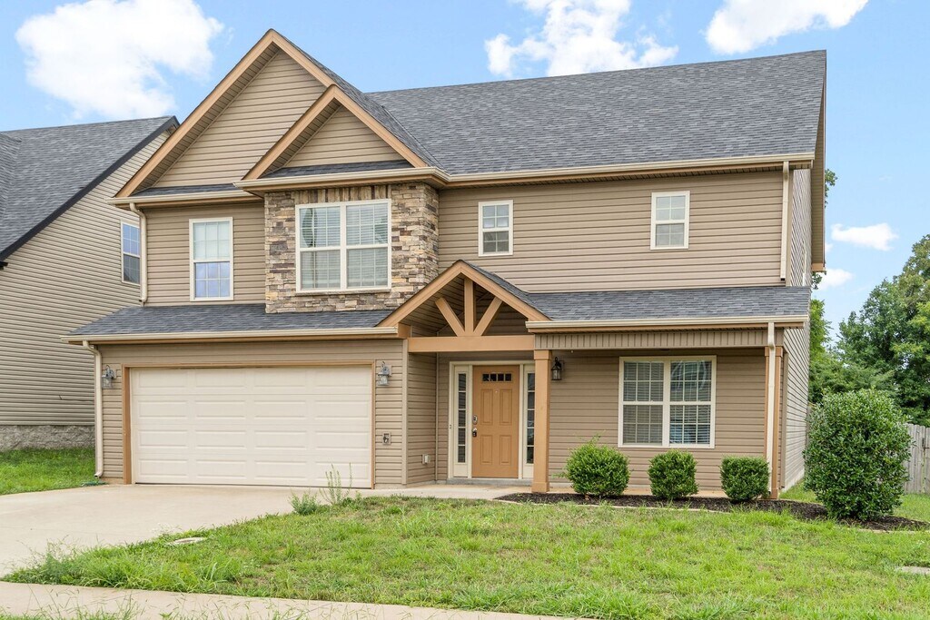 Spectacular four bedroom home in Eagles Bluff! Conveniently located just minutes from restaurants, shopping, i24 and more, this home has been beautifully maintained and features laminate flooring throughout the main living space, large formal dining, spacious eat in kitchen with granite counters and stainless steel appliances, huge living room with stacked stone fireplace, oversized primary suite with full bath, generously sized guest rooms, two car garage, covered patio and great fenced yard! Pet Rent Scale - Dogs: $25.00 per month - Cats: $35.00 per month