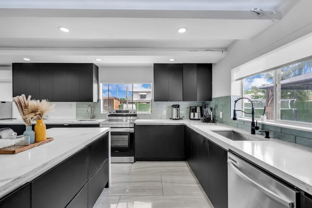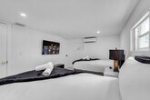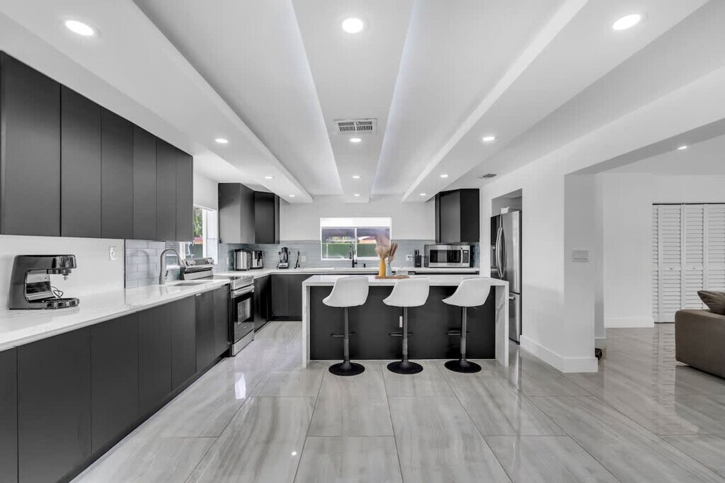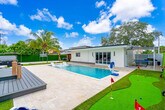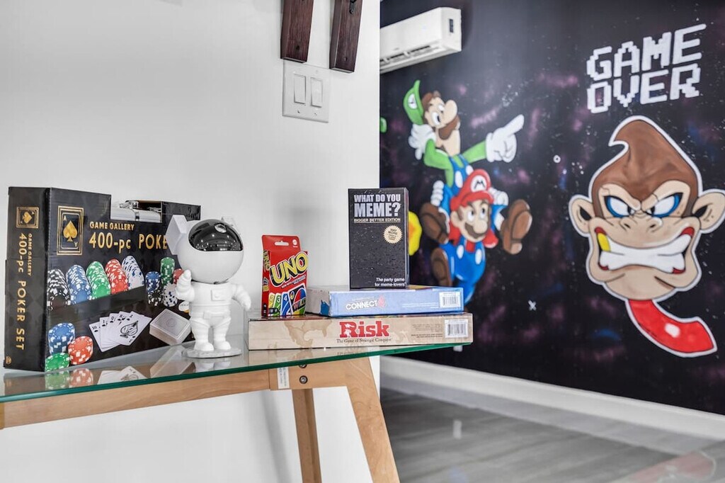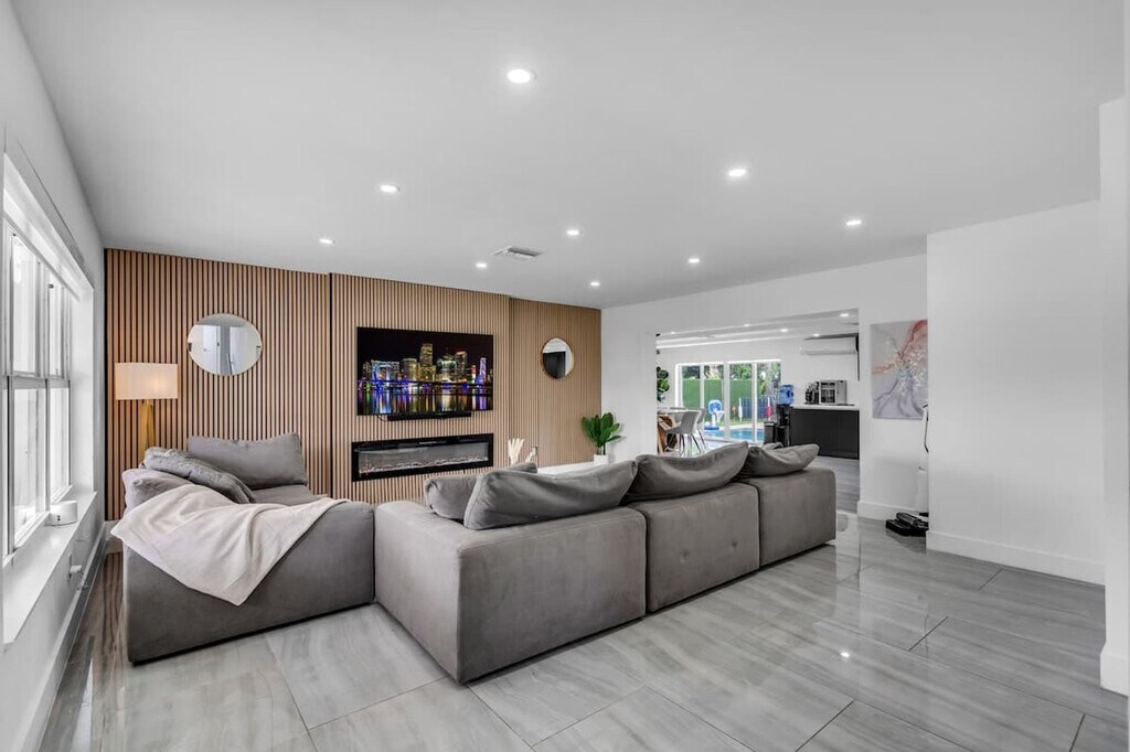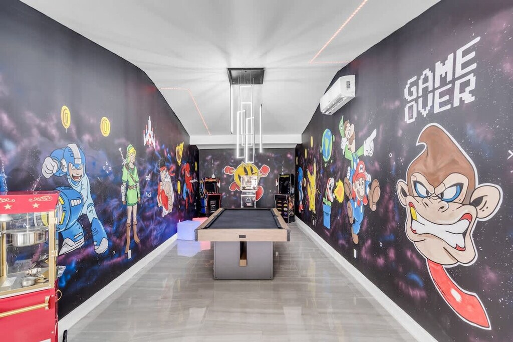 Welcome to your ultimate getaway in the heart of Miami. Feel at home in this 5-bedroom home thoughtfully designed for comfort, relaxation, and fun. This home features unique amenities including a private pool, jacuzzi, sauna, mini golf, ping pong, half volleyball court, life-size chess game, and a state-of-the-art game room with a pool table, arcades, and more. All bedrooms are equipped with Smart-TVs. Extra air mattresses can be provided upon request. This is a pet-friendly property; please indicate how many pets you are bringing before booking. Centrally located in Miami, this home is 2 miles from Aventura's food and restaurants, 5 miles from the beach, and 13 miles from FLL Airport. Driveway parking is available for up to 4 cars; please do not park on the street or grass, as the city will issue a fine. Please clean up after using the BBQ; if the grill is not cleaned, an extra $50 cleaning fee may apply. Smoking is not allowed inside the house. The landscaper will enter the property for scheduled lawn maintenance every 15 days, and the pool technician will conduct pool maintenance twice a week. These services are automatic and non-intrusive. [SI]