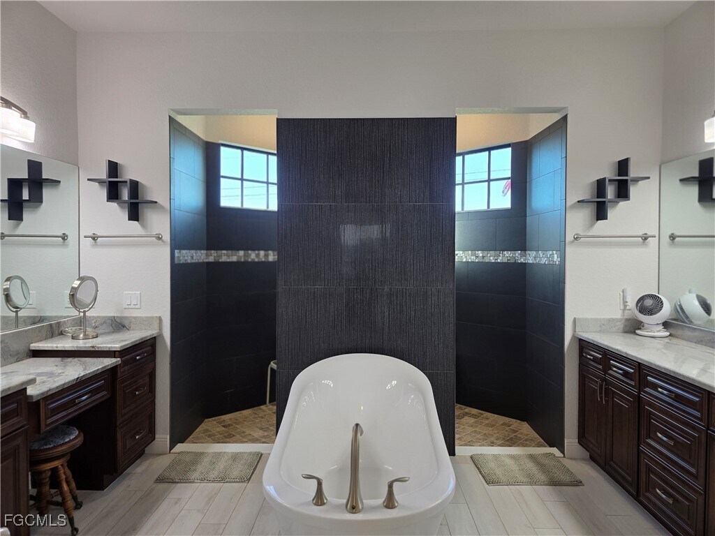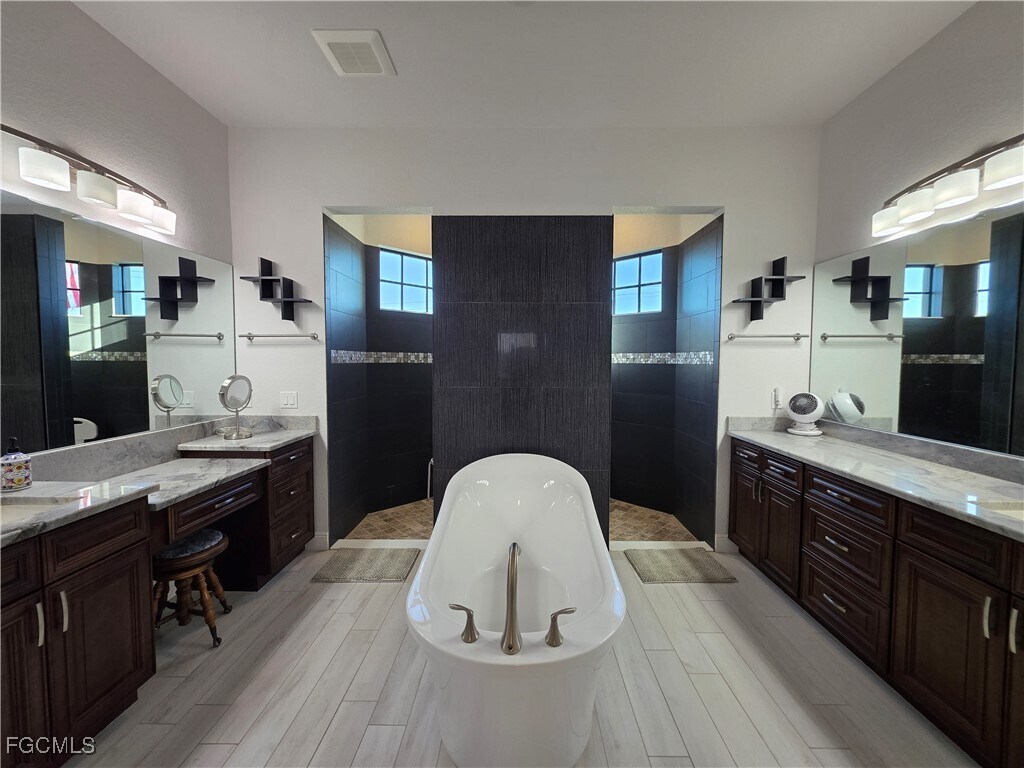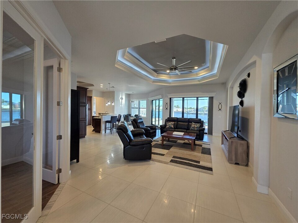 Welcome to your private slice of paradise! Nestled on an oversized lot with stunning views of four intersecting canals,this Gulf access pool home offers peace,beauty,and all the comforts of home. Located in a quiet area with minimal traffic,it’s the perfect spot to relax and unwind. Step through the grand double doors into a light-filled great room featuring tall decorative ceilings,an open layout,and elegant porcelain tile throughout. The impressive kitchen is ideal for entertaining,thoughtfully designed with upgraded wood cabinetry,granite countertops,and high-end appliances. The spacious primary suite opens directly to the lanai and includes dual walk-in closets and a luxurious bath with a soaking tub,walk-through shower,and dual vanities. Plantation shutters and upgraded lighting throughout the home add to its charm and comfort. Step outside and take in the spectacular water views from the expansive lanai. Whether you’re lounging poolside,dining al fresco,or floating in the heated saltwater pool with sunshelf and bubblers,every moment feels like vacation. The property boasts 165 feet of seawall with a covered boat dock and captain’s walk — perfect for watching Southwest Florida’s stunning sunrises and boat traffic by. Additional features include a 3-car garage,impact windows and doors,a whole-house reverse osmosis system,and tasteful coastal décor throughout. Available turnkey for seasonal rental – 30-day minimum stay. All you need to bring is your bathing suit and your toothbrush — your Florida getaway is waiting!