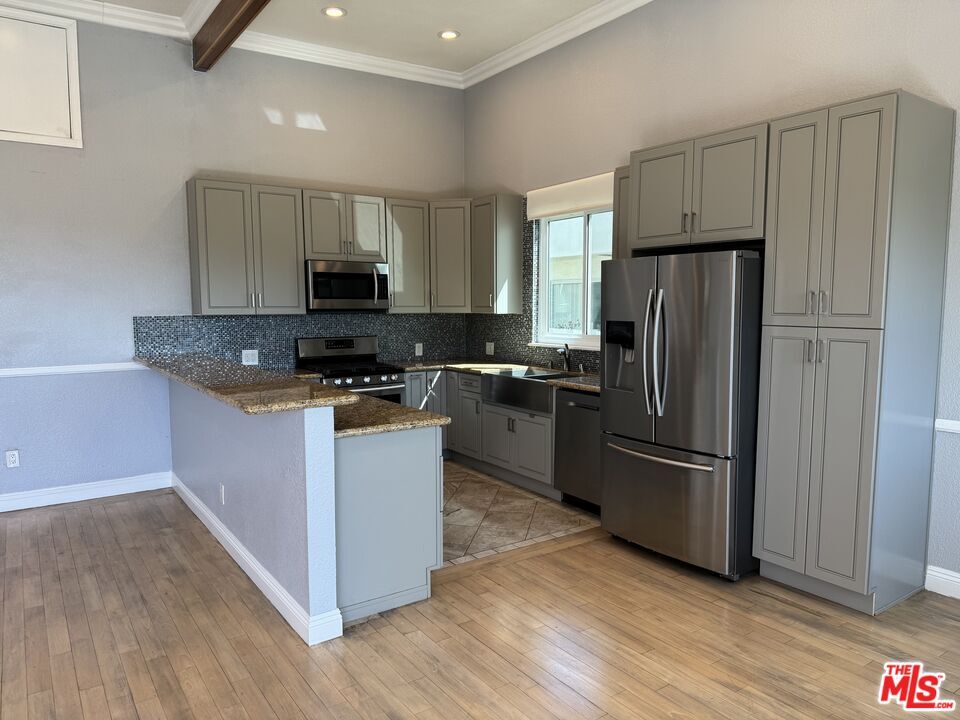 This stunning remodeled 2-bedroom, 2-bathroom top-floor front unit is the perfect blend of style, comfort, and convenience! With no common walls and a large balcony, you'll enjoy maximum privacy and plenty of fresh air. The open, airy layout is bathed in natural light, featuring high ceilings that make the space feel even more grand. New treble-glazed vinyl windows and LED lighting throughout add a modern touch, while the oak and bamboo hardwood floors bring warmth and elegance. Love to cook? The brand-new kitchen boasts sleek cabinets and top-of-the-line Samsung steel appliances. The convenience continues with an in-unit laundry washer/dryer, central air with a Wi-Fi thermostat, and a Ring Video Doorbell for extra security. Carport parking is included, with an option to rent an additional parking space for $100 per month. Cats are welcome! Nestled in a quiet, safe neighborhood, this unit is perfect for anyone looking for a stylish and peaceful place to call home. No smoking. Don't miss out on this gem, schedule a tour today! MLS# 26651815