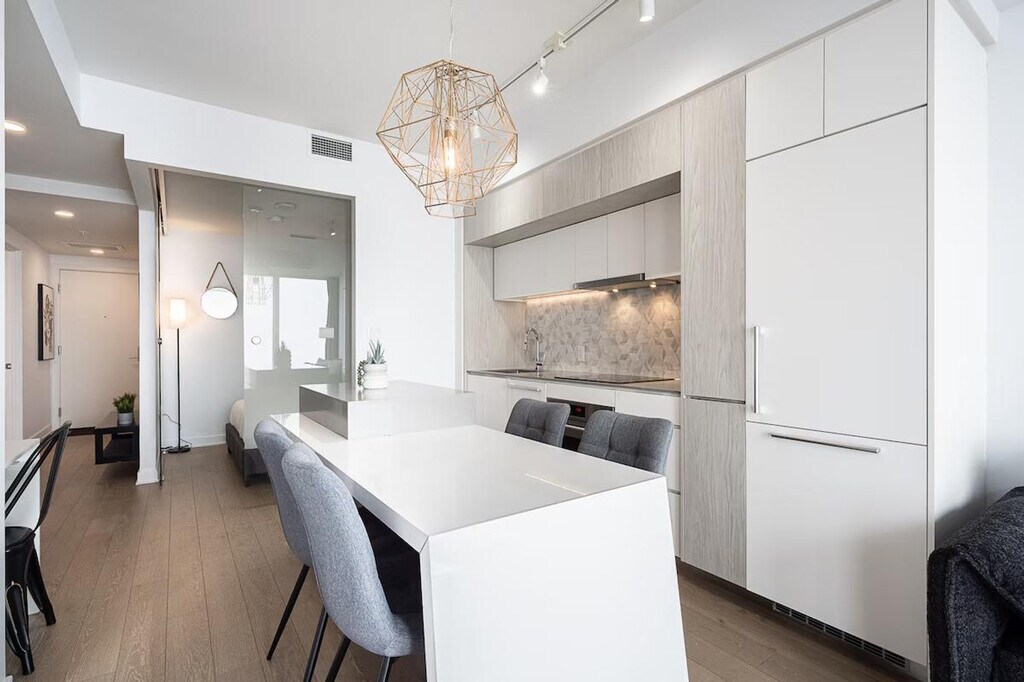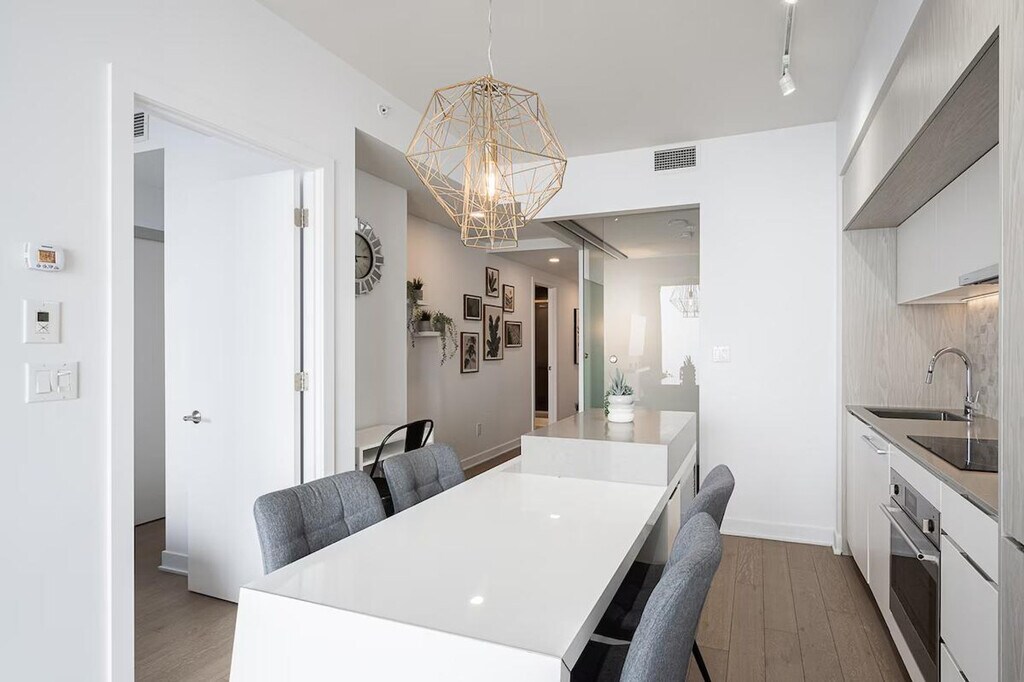 The advertised rate of C$4,269/month is the lowest available price, based on a 30 day(s) stay with a move-in date of July 5, 2026. Rates vary depending on the duration of stay, season, and other parameters. For exact pricing and additional pricing components, please visit our website and enter your desired move-in and move-out dates. The rate is applicable when billed upfront; it can be higher if billed in multiple payments. Welcome to Tour des Canadiens 2 and feel at home in this newly renovated 660 sq. ft. furnished condo. This apartment accommodates 4 guests and features a private balcony, a glass shower, high-end appliances, and an in-suite washer and dryer. Enjoy a Smart TV and stay seamlessly connected with high-speed Wi-Fi throughout your stay. Indoor parking with in/out privileges is available for a separate fee depending on your length of stay. A variety of cleaning services, including biweekly or monthly options, are offered for an extra charge; please contact us for more information. The apartment is steps away from Bonaventure and Lucien L’Allier metro stations, trains, and Montreal’s underground network. No parties of any kind or loud noises that can alter the harmony of residents are allowed. Smoking (including cannabis/cigarettes or any kind) is prohibited inside the apartment, balcony, or the building. Enjoy the fantastic terrace with BBQ grills, indoor swimming pool, sauna and jacuzzi, fitness center, entertainment room with pool table, bar and cellar, and 24/7 security desk. [SI]