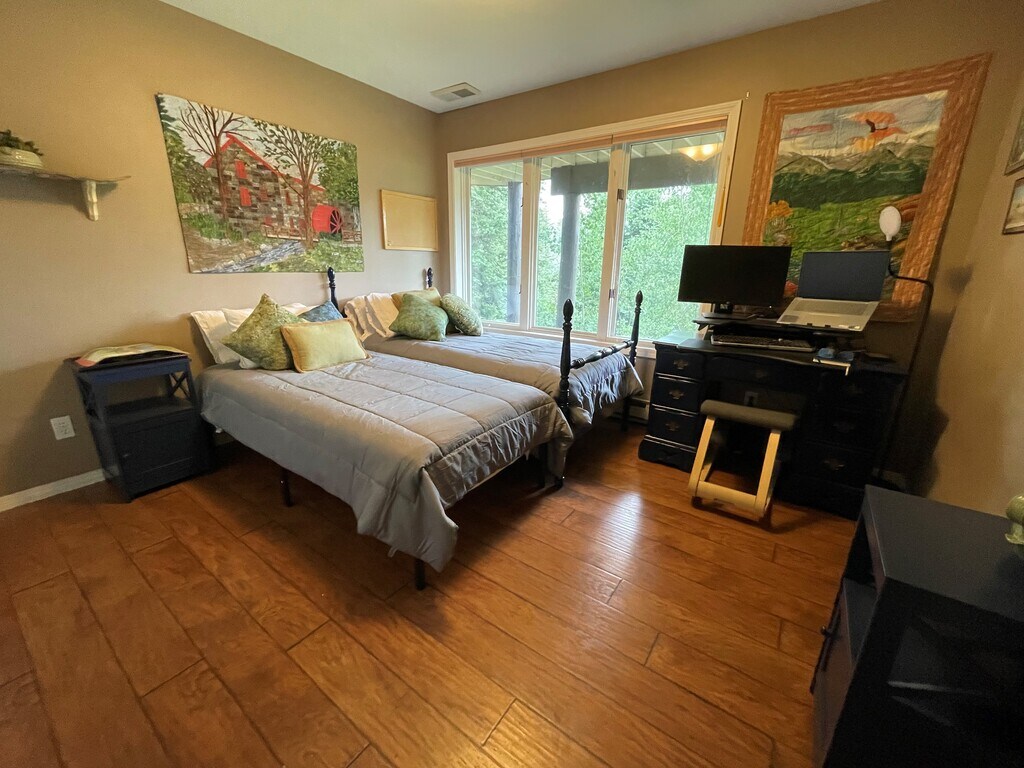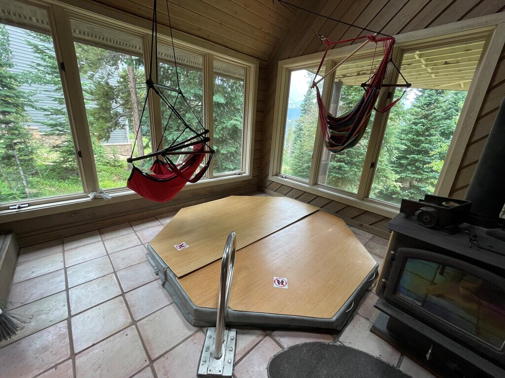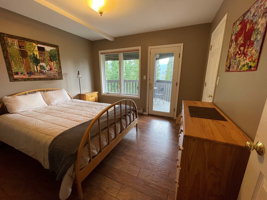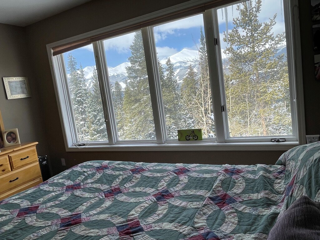 Enjoy this gorgeous, fully furnished, 2,500 sq ft home with sensational views of Breckenridge Ski Area and 10 Mile Range. Only 3 minute drive to town and the Gondola for easy slope access. This home is the outdoor enthusiast's dream! Trails are right outside your door awaiting your every outdoor activity (snow shoeing, back country skiing, cross country skiing, etc). Soak in the best of the afternoon sun and magnificent sunsets from multiple private decks. Enjoy the hot tub to kick off or cap off your day. 3 bedrooms, 4 bathrooms, 3 workstations, newly remodeled and fully equipped kitchen with counter seating. The expansive living room and dining area with vaulted ceilings, sunroom with indoor hot tub, and loft offer multiple gathering spaces with comfortable lounging options. Two wood burning fireplaces assist in the ambiance and heating. GROUND LEVEL: Enter the ground level where you will find a suite-style bedroom with queen bed, private bath with bath tub, and private deck, another bedroom with a twin bed, another bathroom, large walk-in closet for all your gear, sunroom with hot tub and two swinging chairs, and large laundry/mud room. MAIN FLOOR (2nd floor): Choose from two sets of stairs on either end of the house to ascend to the main floor with spacious, great room (living and dining) that extends into the open-air kitchen with all new appliances, cabinets, counter tops, and kitchen-ware. Gather 'round the kitchen counter with 7 counter top and bar level chairs. The 'International Coffee Nook' beckons you to relax in the oversized chairs on the 'bow of the ship' with mountain views galore. Master bedroom and bathroom are located on this upper floor as well. LOFT: From the main floor, climb the spiral staircase up to the loft with two large workstations, queen sized, pull-out couch, sitting/reading area, and 'tree top perch' deck. 3-min drive to town and Breckenridge Ski Area. 20 minutes to Keystone, 30 minutes to Copper or A-Basin. 40 minutes to Vail. 50 minutes to Beaver Creek. Not on bus route. Four-wheel drive highly recommended. 30-60 day lease available January 12-March 13. Price will be prorated according to length of stay. 5 people and 3 cars maximum. Uncovered, driveway parking. 4-wheel drive highly recommended. Inquire about shorter or longer term stays.