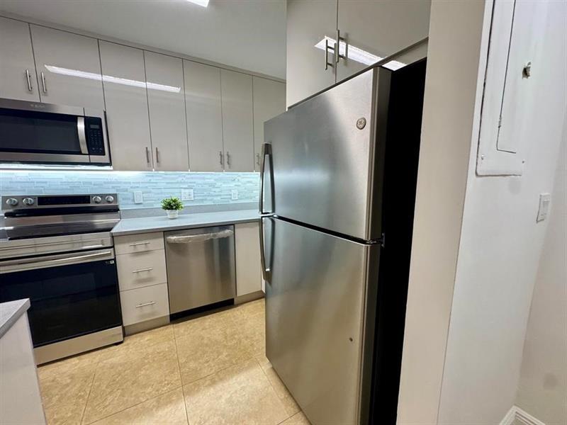 This beautifully remodeled first-floor 2 bedroom/ 2 bathroom condo is move-in ready and checks all the boxes! All ages, pets ok, no credit score, gated community, just minutes from the beach, major highways, and shopping. Experience the attention to detail throughout. The home features a brand-new, custom-designed kitchen, equipped with high-end stainless -steel appliances, perfect for both everyday living and entertaining. The air conditioning system, including all ducts, has been completely reinstalled to ensure optimal cooling and airflow year-round. Primary bedroom has an extra closet. You'll also appreciate the new flooring, fresh paint throughout, and a modern, energy-efficient tankless water heater. sewage, trash, water, pool, gym, jacuzzi, and sauna is included in the rent.