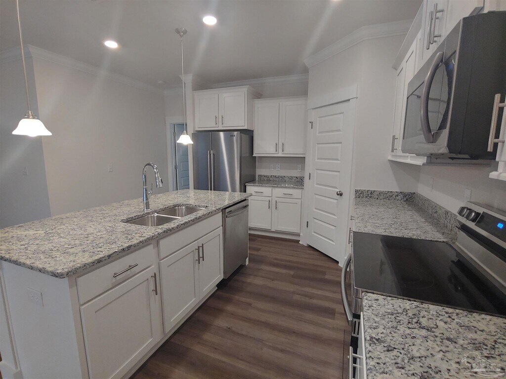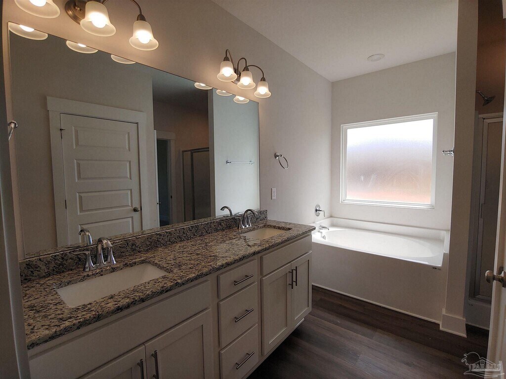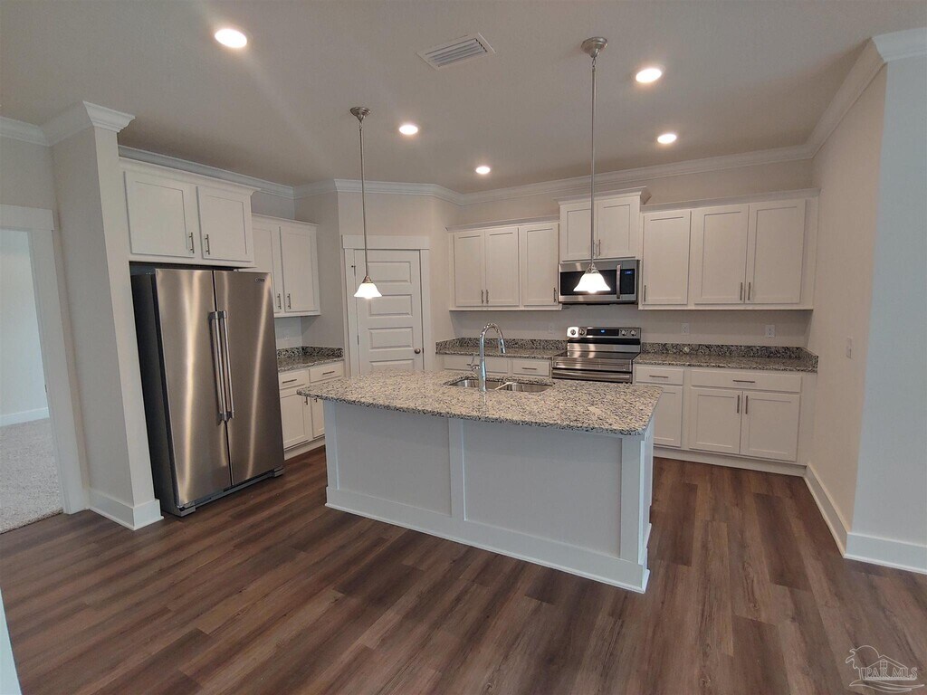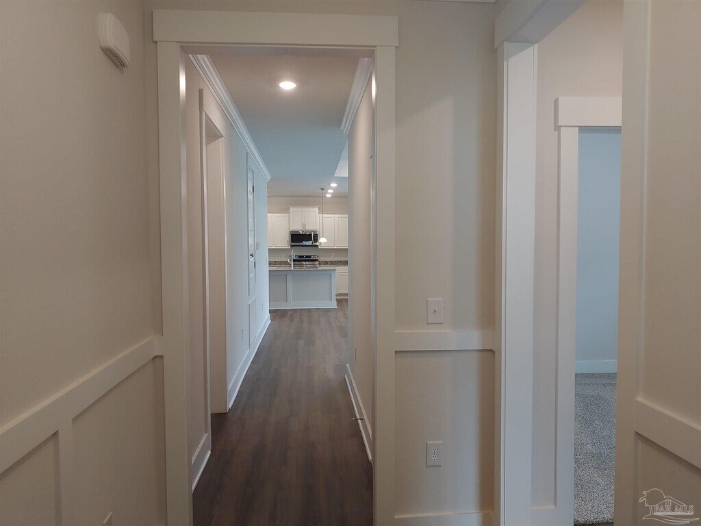 Welcome to this beautiful 4-bedroom,2-bath recently built home in Pensacola! Constructed in 2022,this stunning house offers a spacious,modern living experience. With four bedrooms and two bathrooms,there is plenty of room for everyone. The kitchen is a chef’s dream,featuring granite countertops,upgraded cabinets,a kitchen island,and stainless steel appliances. A split floor plan provides privacy and convenience for all occupants. The master bathroom boasts a double vanity with granite tops,a garden tub,and a separate shower. The large walk-in master closet opens from both the bathroom and the laundry room for added convenience. Flooring throughout is luxurious LVP with cozy carpets in the bedrooms. Ceiling fans offer comfort during the warmer months. An indoor laundry room adds to your daily convenience. High ceilings create an open,airy atmosphere. Step outside to the covered back patio and fenced backyard for privacy. The sprinkler system makes lawn maintenance easy. The two-car garage with side entry provides ample parking and storage. No smokers,please. Roommate applicants,if accepted,must submit their applications and qualify individually.