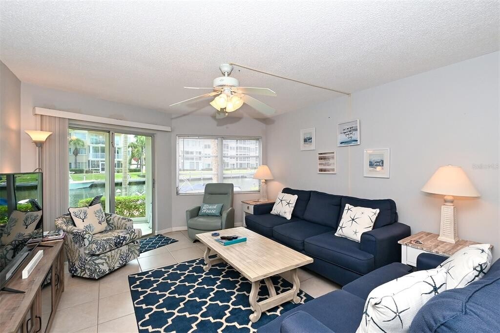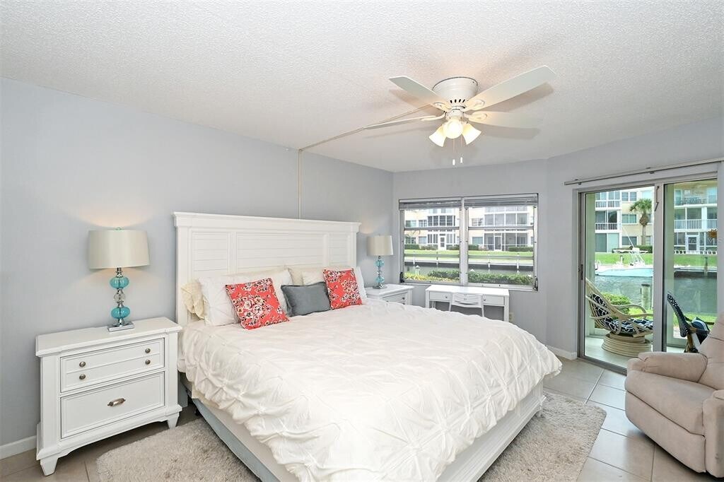 Siesta Harbor is surrounded by the Intracoastal Waterway with Harbor and Bay views from every unit. This north facing,totally renovated 1 bedroom has 2 full baths,and is conveniently located on the ground floor close to your assigned parking space. Owner has an air mattress available for guests,a new coffee table,an electric fireplace,new shower heads,a portable electric grill,bikes,beach chairs,and a new 10X10 beach canopy. An open kitchen and remodeled bathrooms are some more of the perks in this waterfront unit. Sit on your lanai and watch the boats go by as you sip your morning coffee. Amenities include direct beach access to Siesta Key beach,the #1 beach in the USA,community pool and spa,sauna,fitness,shuffleboard and walking distance to shops,restaurants and entertainment. Close proximity to the Stickney Point bridge enables easy access on and off the Key. This is a 55+ community which means one renter in the party must be over 55 years of age. No pets and no smoking please. 1 car reserved parking space. MLS# A4125928