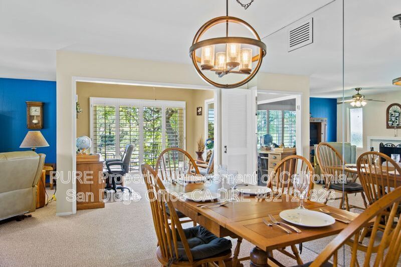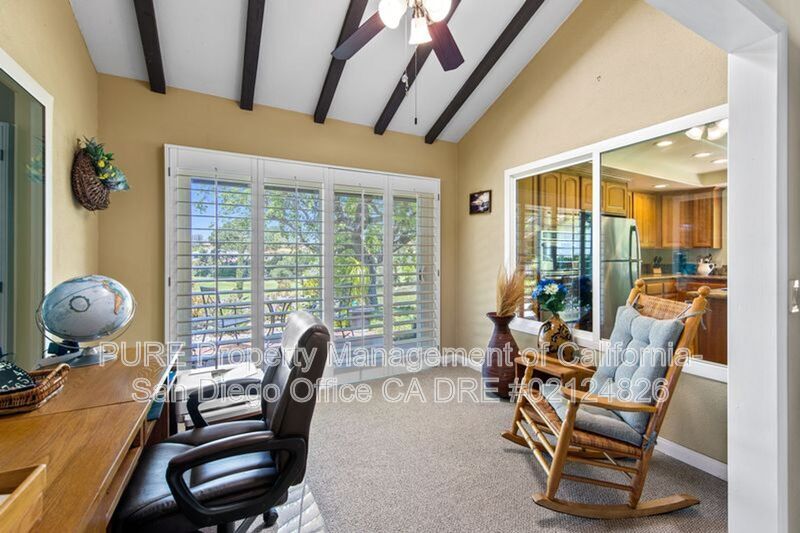 Sweeping Views from this single level home! Rare and peaceful at tip of a 5-home enclave overlooking golf course and water features. This beautifully maintained 1,400+ sq ft home is in the highly sought-after Oaks North community of Rancho Bernardo. 55+ Community This property offers views from every window and two patios overlooking the golf course. Enjoy spacious living, a 2+ car garage, and private guest parking — a rare find! Step outside to your private patio overlooking the pristine fairways, ideal for quiet mornings, evening BBQs, or simply soaking in the sweeping views. Step into a bright, open-concept layout featuring a spacious living and dining area with a cozy fireplace. There is a gourmet island kitchen with granite countertops and a sunny breakfast nook. Plantation shutters throughout Central heat and A/C for year-round comfort. Full-sized washer & dryer in the attached 2-car garage, complete with extra storage. There is an additional den with its own separate patio. Enjoy being just a short walk to the community center, golf course, pool, jacuzzis, pickleball and tennis courts. Designed for vibrant 55+ active adult living, Oaks North offers an incredible variety of amenities and friendly social clubs including pools, spa, golf, pickleball, tennis, lawn bowling, exercise room, & endless activities from the Community Center & Golf Club House like hiking groups, card groups, pottery, art and sewing clubs, ping pong, dance club, library, wood shop, travel clubs and more. There is truly something for everyone. Located in the desirable Rancho Bernardo area, you’ll enjoy peaceful surroundings with convenient access to shopping, dining, and major roadways. This is resort-style living in one of North County’s most established active communities. The property includes: refrigerator, stove/oven, microwave, dishwasher, washer, dryer, Central HVAC & HOA exterior yard maintenance ANIMALS PETS ACCEPTED: 1 dog. To simplify pet verification and ensure policy clarity, we use PetScreening, a third-party service. All applicants with pets must complete this screening. Full animal policy details are available on our website. Breed restrictions apply. *Inapplicable to assistance animals RESIDENT BENEFITS PACKAGE For REDUCED move-in costs, talk to us about our Security Deposit Waiver Program! Enjoy the benefits of the Resident Benefits Package (RBP), tailored to your needs. Choose from our tiered pricing options, starting at just $25.99*/month. Your RBP may include liability insurance, HVAC air filter delivery for applicable properties, on-demand pest control, and more. SECURITY DEPOSIT INFORMATION Pay the traditional security deposit amount, or reduce your move-in costs with our Security Deposit Replacement Program. Eligible applicants can replace the traditional deposit with an affordable monthly fee. While you remain responsible for any damages, this program offers substantial upfront savings at move-in! AMENITIES AND SERVICES INCLUDED Moving in just got easier! Enjoy PURE Utility Concierge services at no extra cost, making your transition smooth and simple. ADDITIONAL DISCLOSURES All information provided is deemed reliable and accurate but not guaranteed. Prospective residents are responsible for verifying all property details and conditions to their satisfaction prior to submitting an application. Please be aware that we do not advertise on Craigslist. We do not accept applications from any 3rd party service including Zillow. Visit our website for more information and to apply. Amenities: community pool, tennis courts, community clubhouse, community gym, jacuzzi, community library, pickleball courts